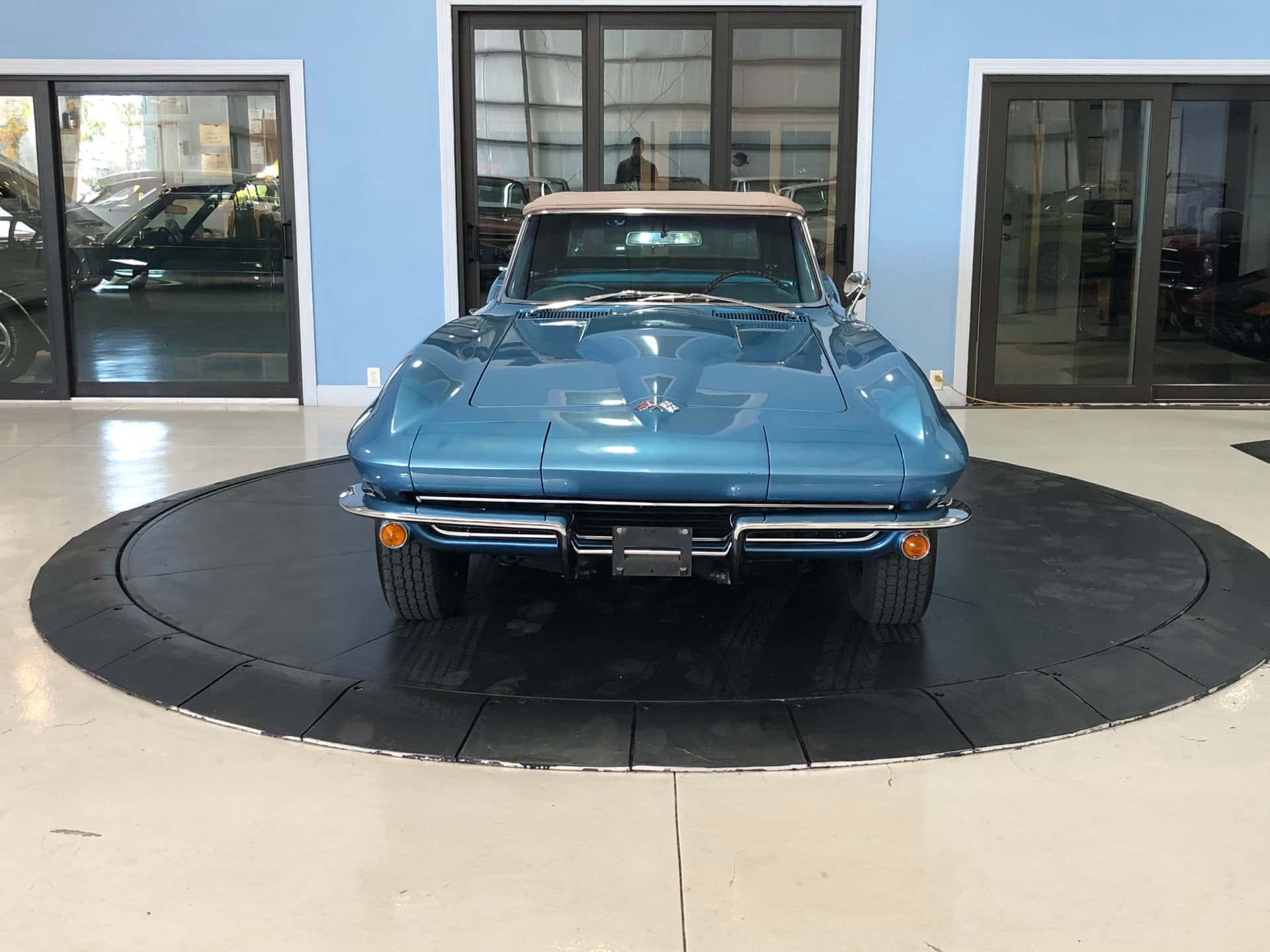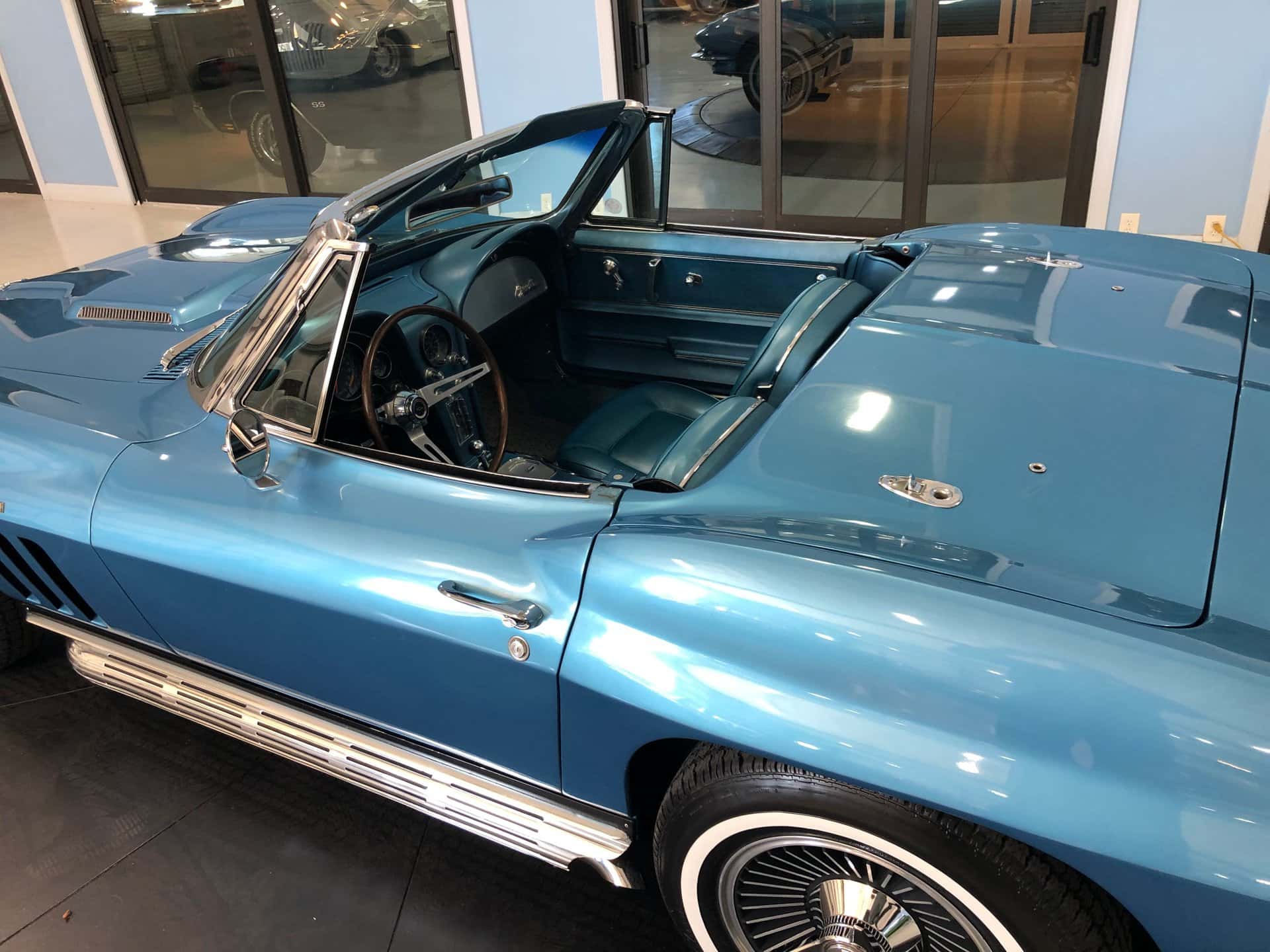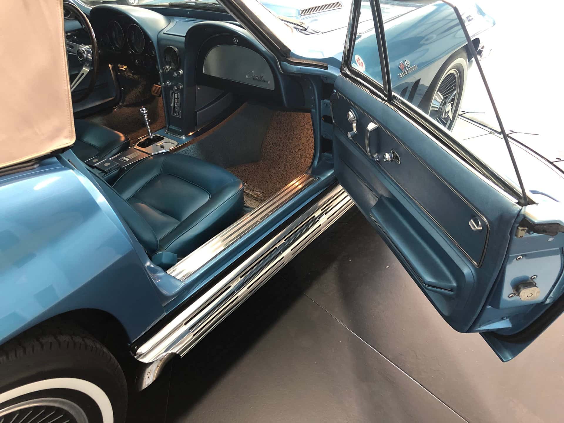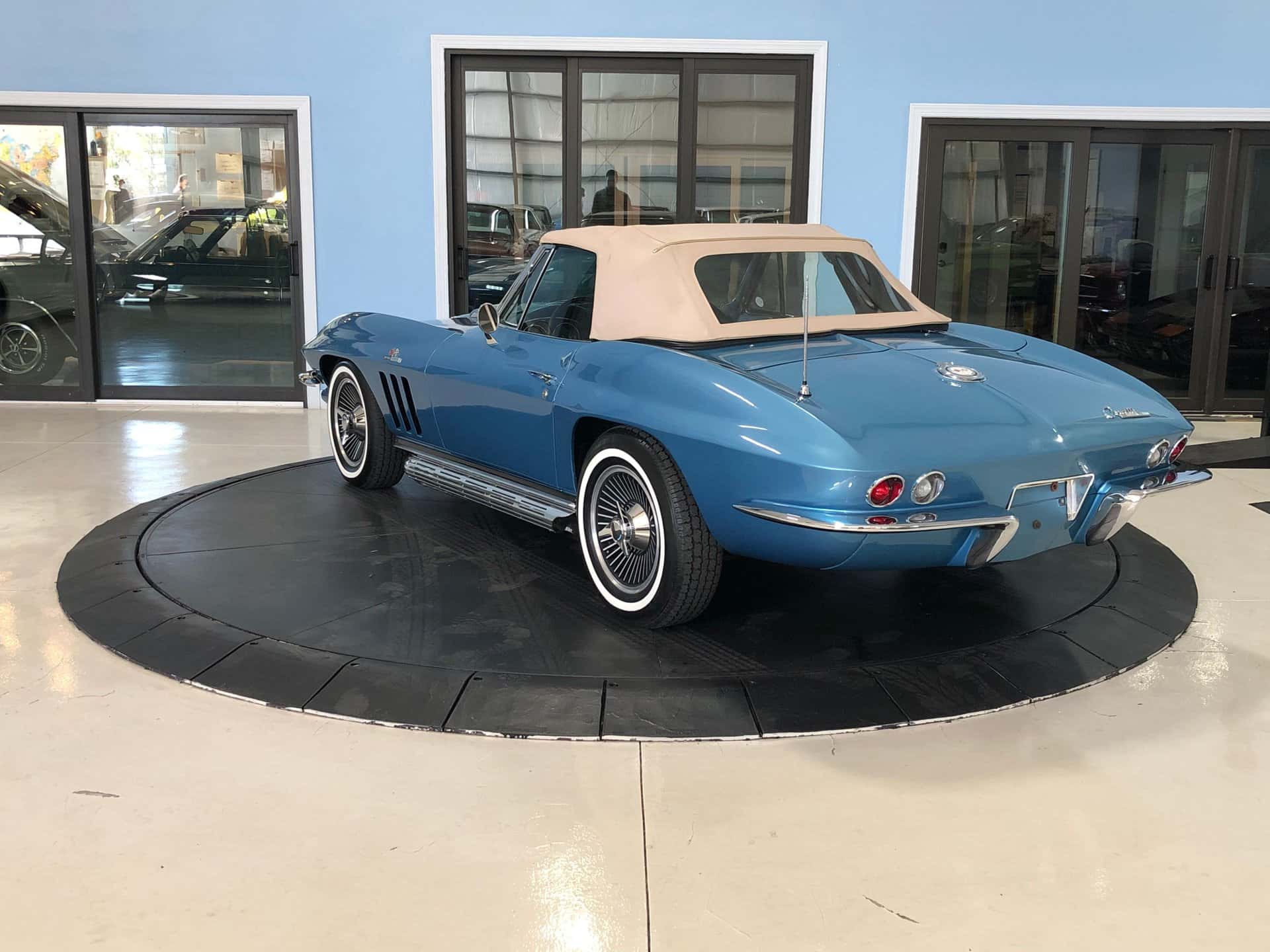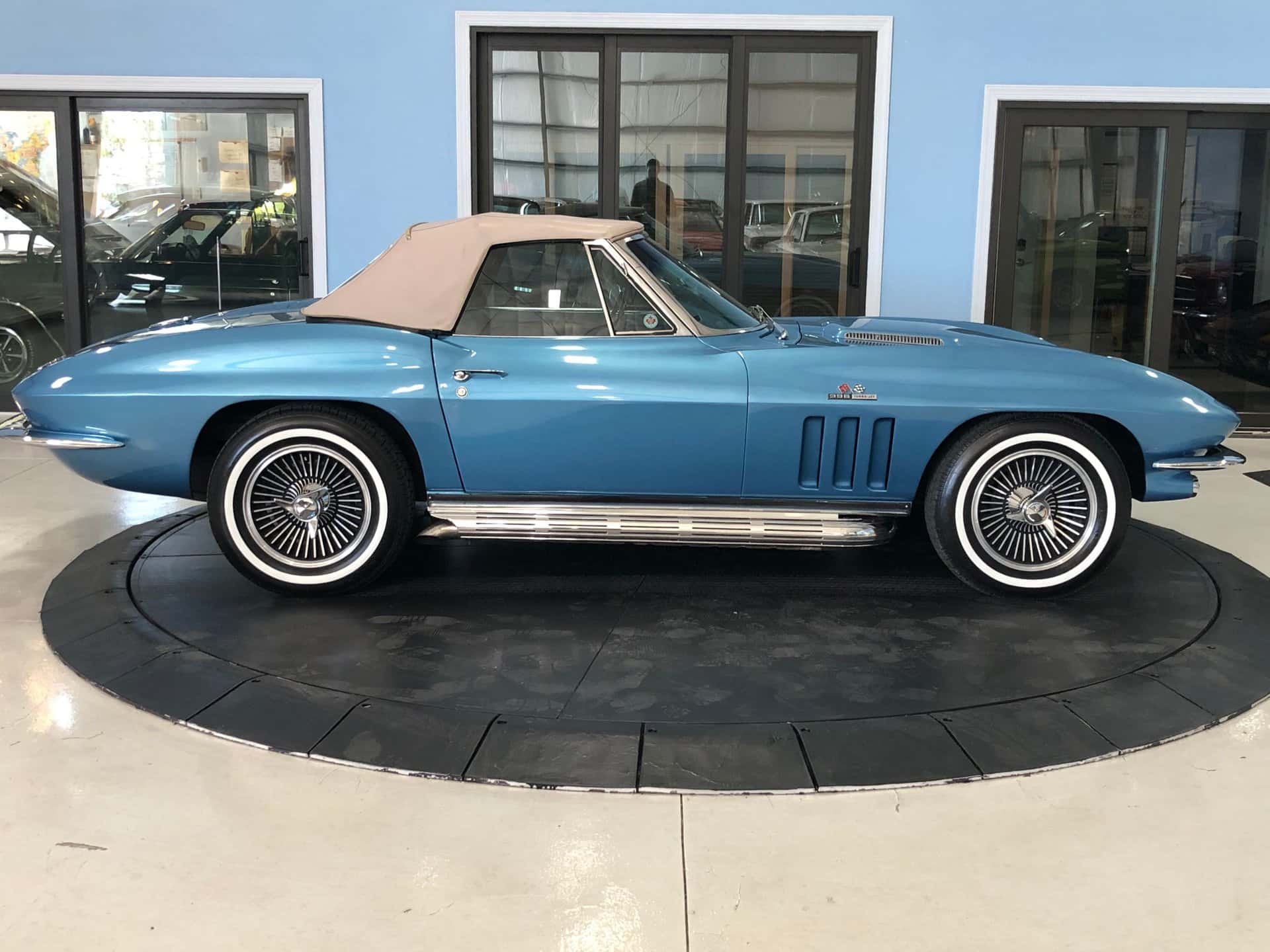 Why This Car? Exterior: This Sting Ray is painted in Nassau Blue, with scooped hood, louvered vents behind the front wheels, and intact emblems, bumpers, taillights, door handles, gas cap, and white convertible top. It rides on correct 15-inch cast aluminum wheels with knock-off hubs and whitewall tires, recreating the original look. Interior: The luxurious interior showcases new blue trim with expanded vinyl upholstery. It offers twin bucket seats with bolster-like design, blue carpet and door panels, dual sun visors, central console with heater and defroster controls, electrical gauges, and a wood steering wheel. Mechanical: This Corvette features a powerful Turbo-Jet 396 cubic inch engine with 425 horsepower, one of only 2,157 L78 examples produced in 1965. It has “porcupine” cylinder heads, aggressive cam, chrome open air cleaner, orange painted valve covers, side-pipes, aluminum intake, Holley carb, and a Muncie 4-speed transmission. The chassis is correctly restored with all the right parts. Call us today and get your dream car!