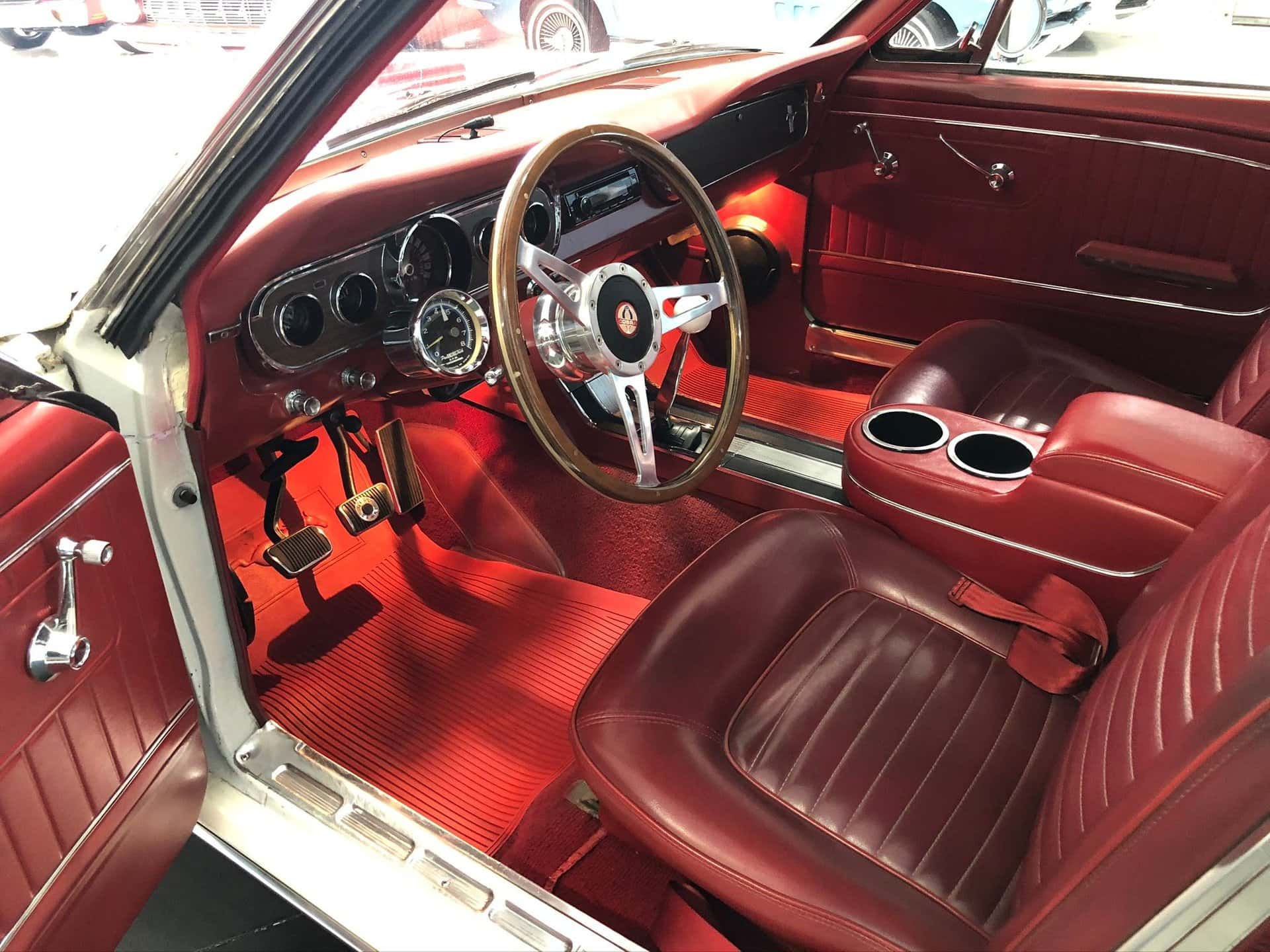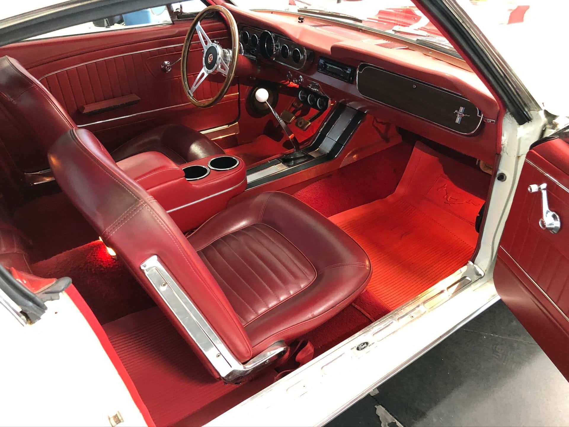 Why This Car? Exterior: The Mustang is adorned with a striking white paint job, which is accentuated by red competition stripes that run from the front to the rear of the vehicle. It boasts a Shelby custom hood with hood lock pins and cables, pristine chrome front and rear bumpers, stainless trim, Mustang emblems, and visually appealing grill and body lines. The overall exterior appearance is eye-catching and captivating. Interior: The Mustang features a new red twin bucket seat interior with matching red carpet and floor mats. The rear seat also matches the color scheme. It is equipped with a wood sport steering wheel, seat belts, a red console with the transmission shifter, a well-designed dashboard with all the factory gauges, a tachometer, and auxiliary gauges. Additionally, it has a stereo system, air conditioning, and a red headliner. Mechanical: This Mustang was originally equipped with a 289 V8 engine, but it has been upgraded. The modifications include a performance carburetor, a custom dual ram air cleaner assembly, an aluminum intake manifold, polished Ford Racing valve covers, performance plumbing, tube headers, a polished air conditioning compressor, and it resides in a beautifully clean and detailed engine compartment. The modified engine delivers impressive horsepower and produces an exhilarating sound. It is complemented by an improved ignition system, a Mallory distributor, a performance radiator system, and it is mated to a 5-speed manual transmission. The dual exhaust system enhances the performance and flows out from the lower body panels. Call us today and get your dream car!