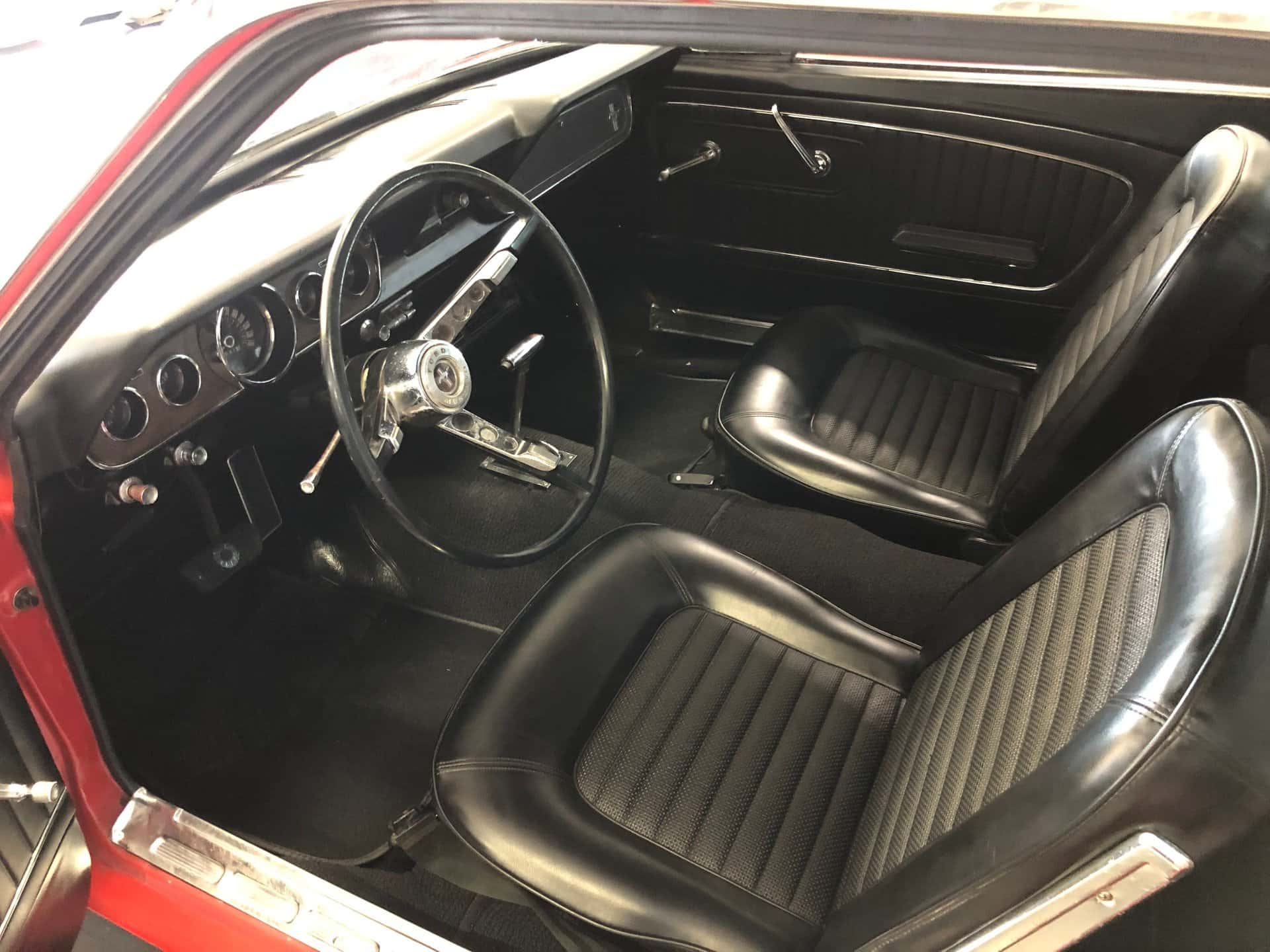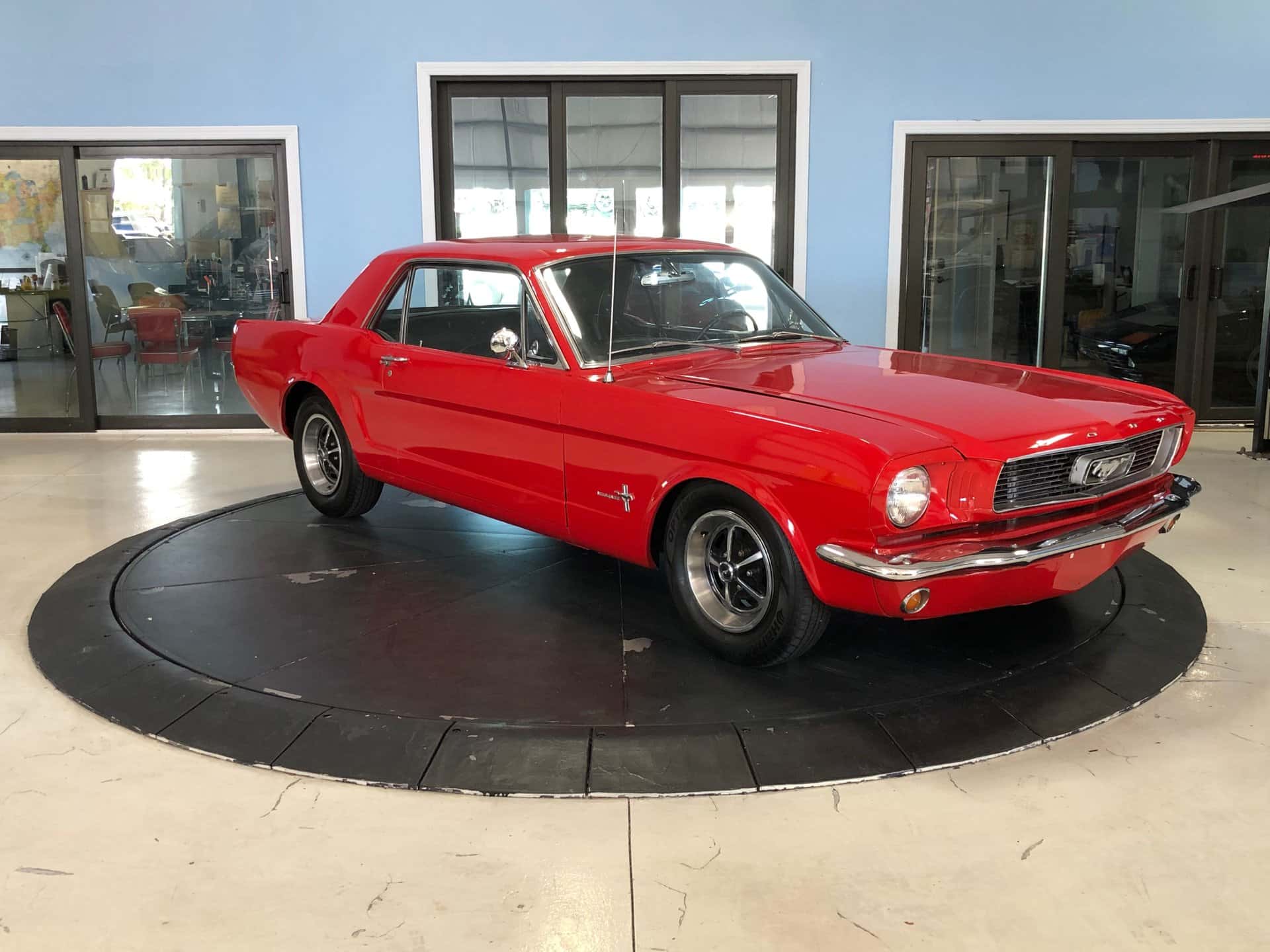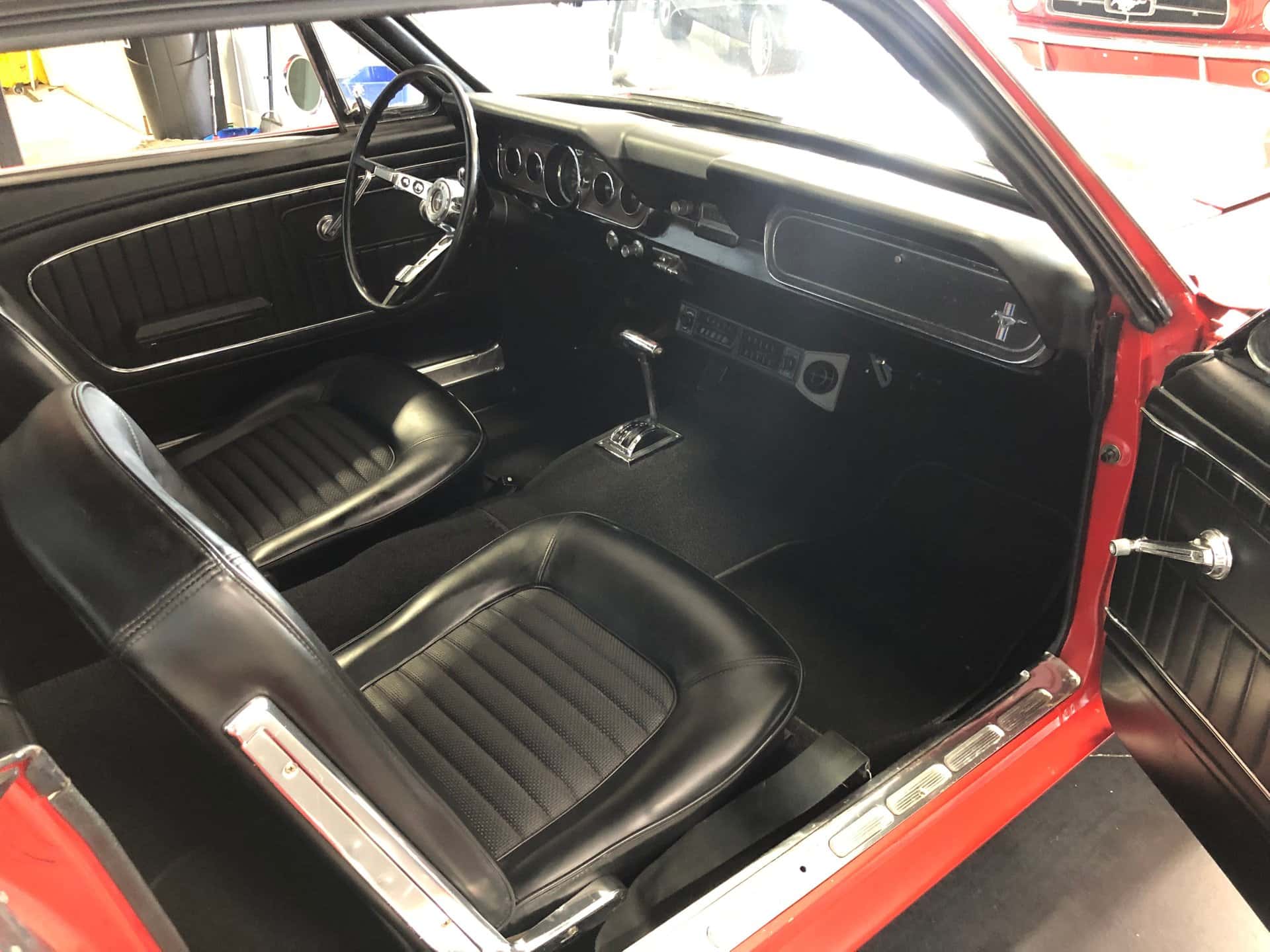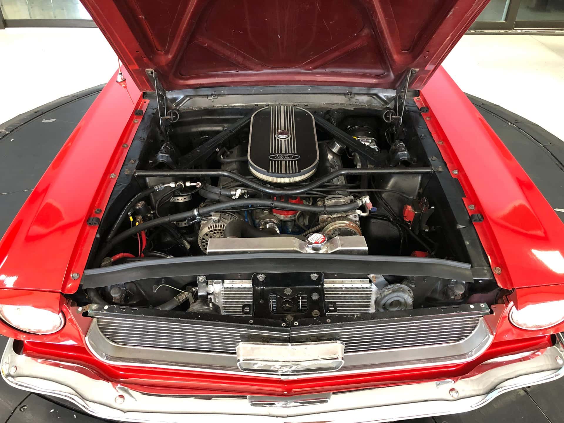 Why This Car? Exterior: This Mustang boasts a stunning vibrant red paint job with a high-gloss finish that looks exceptional in the sunlight. The body lines are well-defined, giving the car a muscular appearance. It is fitted with 5-spoke wheels and blackwall performance tires that perfectly complement this first- generation Mustang. The vehicle also features great front and rear chrome bumpers, trim, and Mustang emblems. The rear valance allows the exhaust to exit underneath it, adding to the car’s aesthetic appeal. Interior: The interior of this Mustang is in impeccable condition and has been completely renovated. It showcases twin white front bucket seats and a matching rear bench seat. Other interior features include wood grain accents, matching black door panels, seat belts, carpeting, a custom center console, and a floor-mounted automatic shifter. Mechanical: This Ford Mustang has undergone extensive mechanical upgrades, including a modified small block Ford engine. The engine now boasts a performance 4-barrel carburetor, a Ford Racing blue painted block, an aluminum intake, a modified distributor with performance spark plug wires and coil. It also features full-length tube headers connected to a dual exhaust system, delivering an impressive sound. Other enhancements include a black Ford Logo finned open-element air cleaner, Ford Motorsport valve covers, an aluminum aftermarket radiator, and additional features such as air conditioning, power steering, and power brakes. The car is equipped with a smooth shifting automatic transmission that transfers power to the H.D. rear end. The rear suspension has been modified with sway bars and air shocks. Call us today and get your dream car!