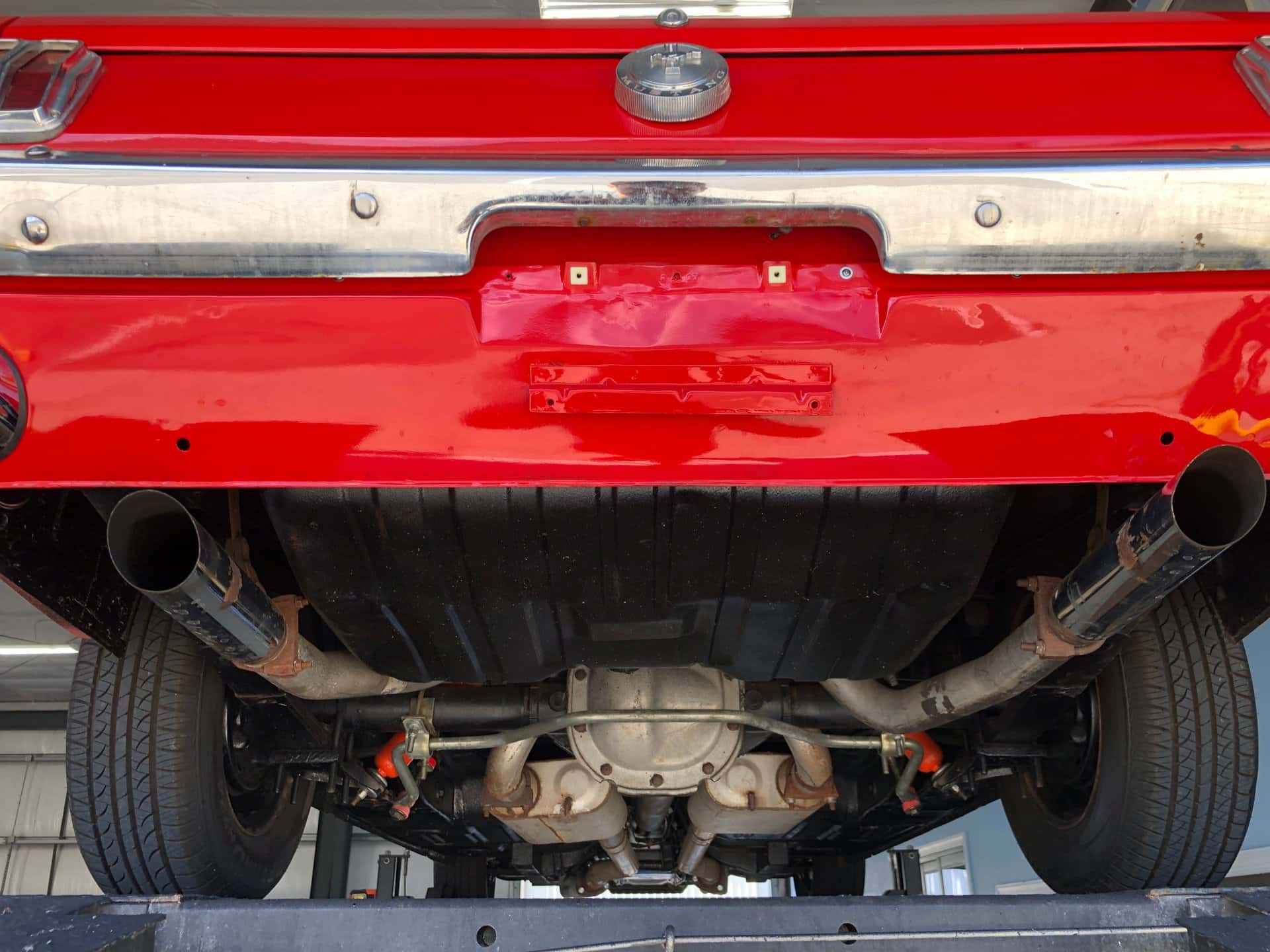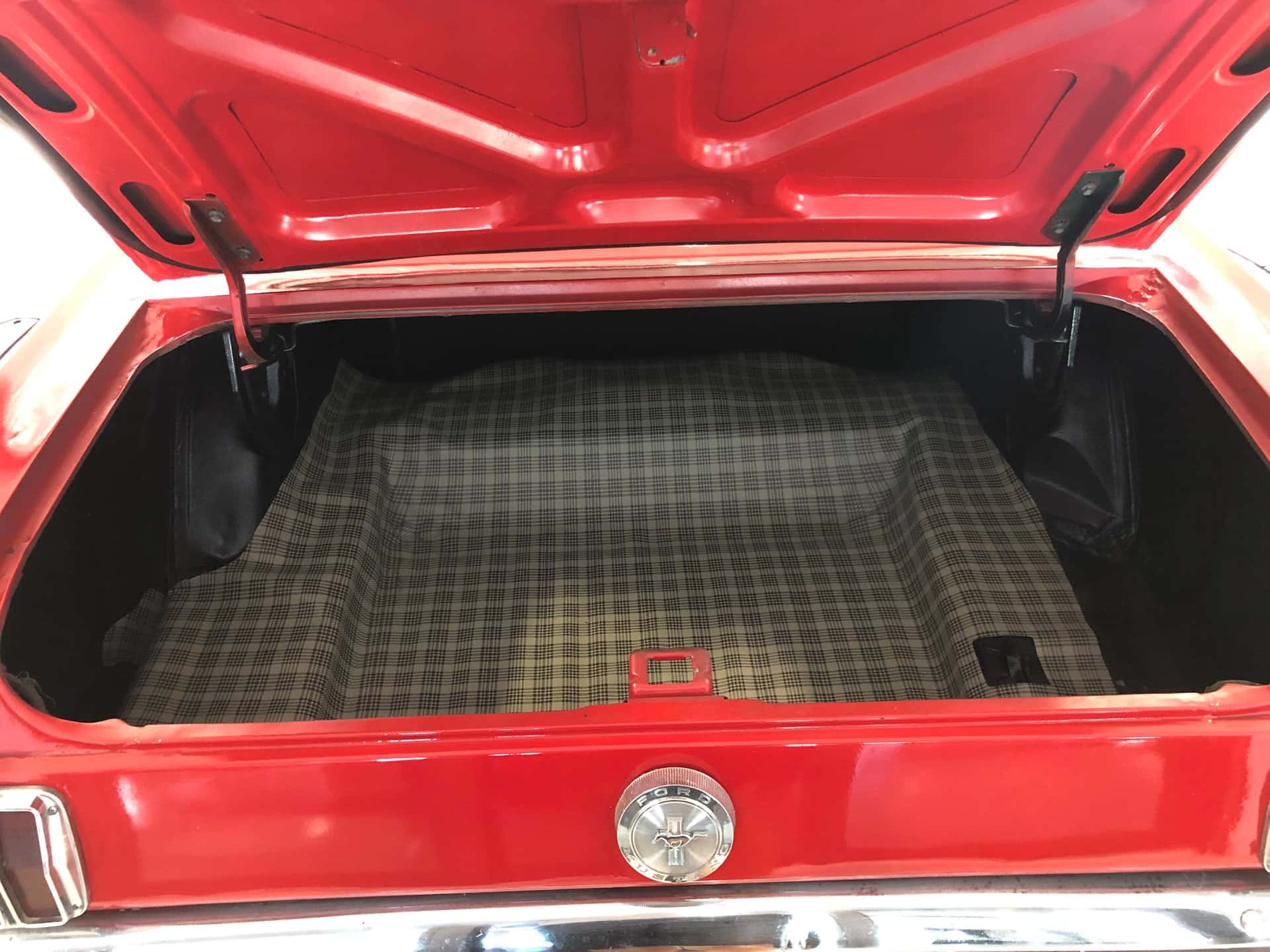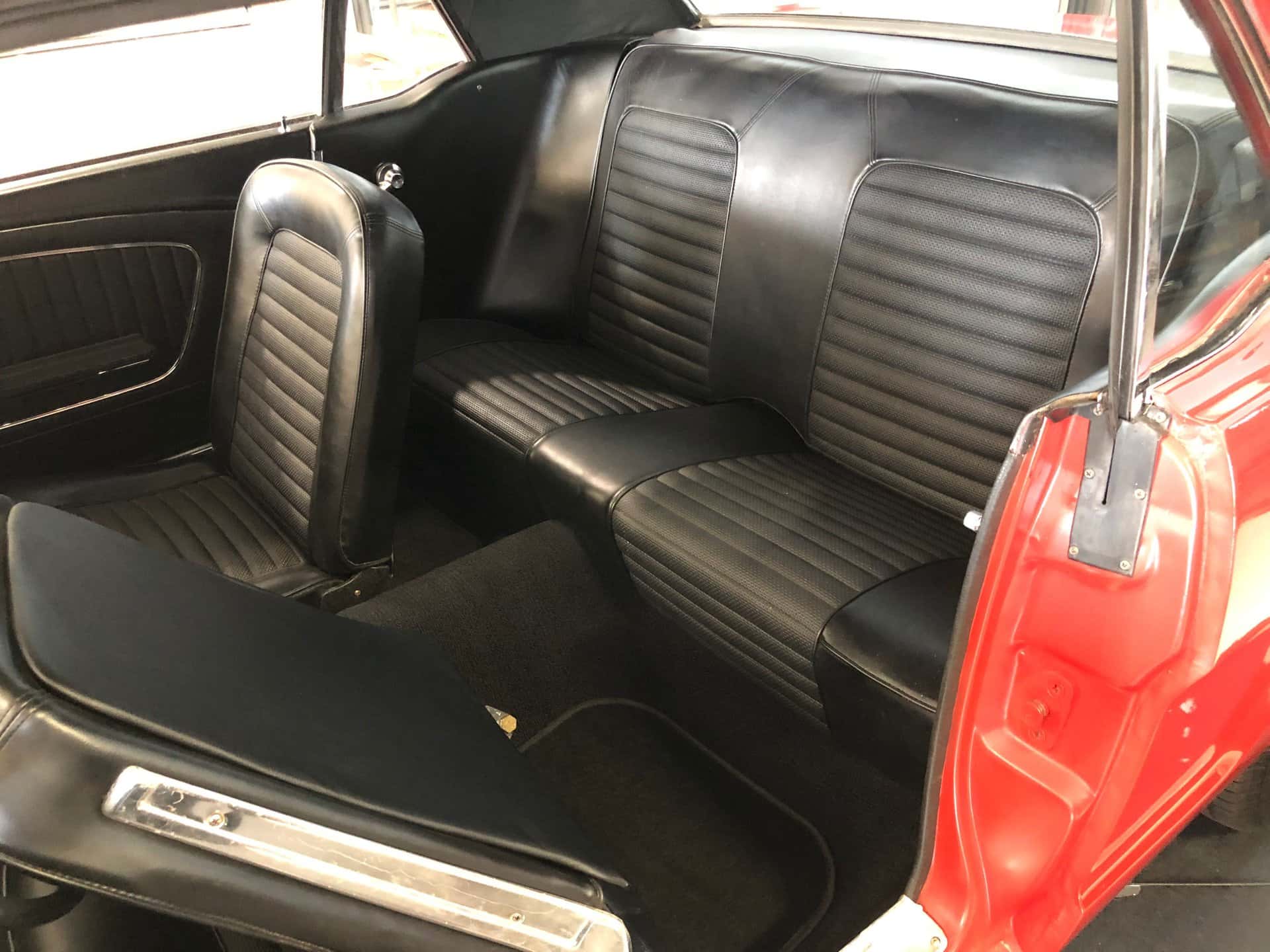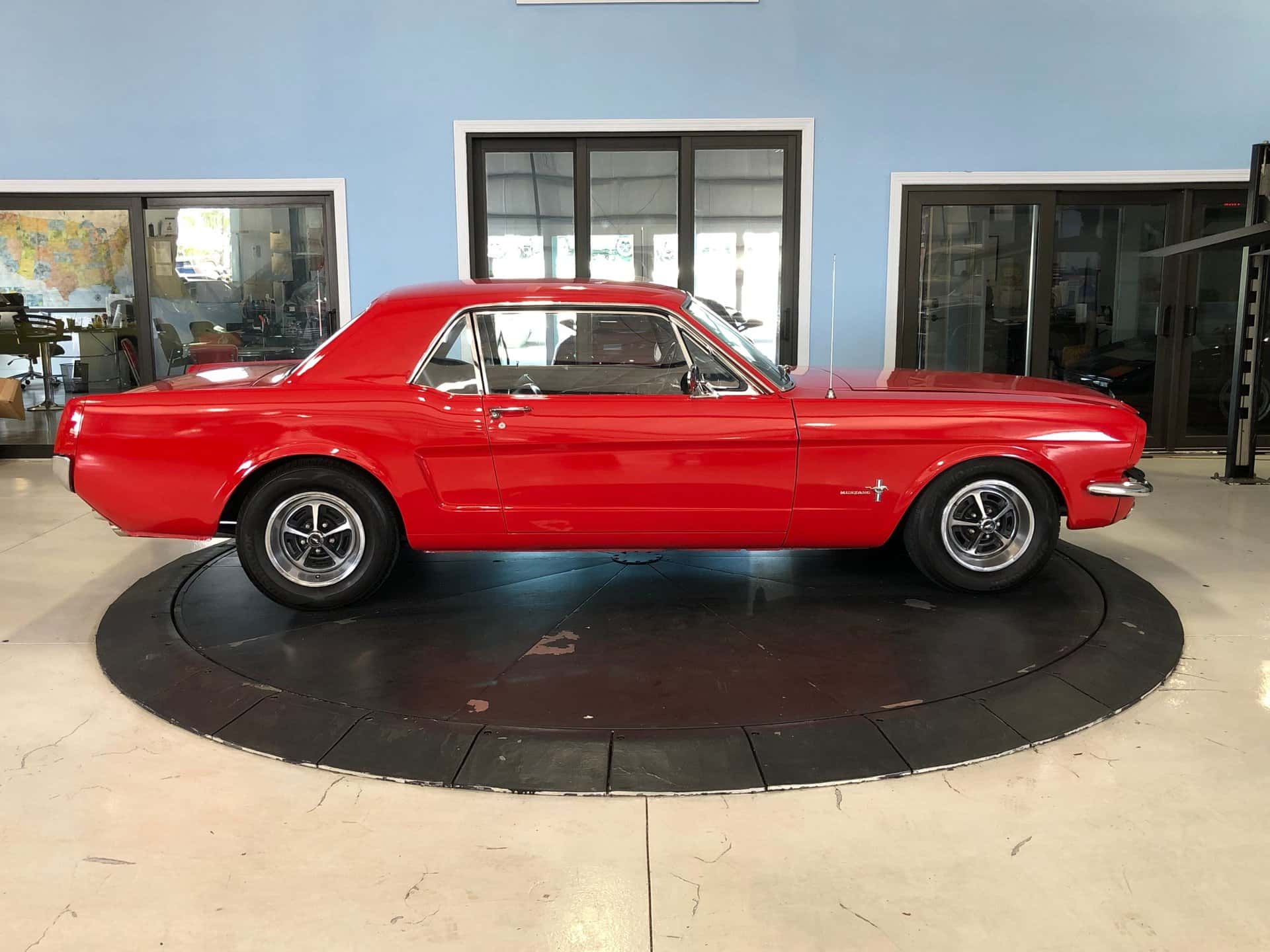 Why This Car? Exterior: This Mustang boasts a stunning vibrant red paint job with a high-gloss finish that looks exceptional in the sunlight. The body lines are well-defined, giving the car a muscular appearance. It is fitted with 5-spoke wheels and blackwall performance tires that perfectly complement this first- generation Mustang. The vehicle also features great front and rear chrome bumpers, trim, and Mustang emblems. The rear valance allows the exhaust to exit underneath it, adding to the car’s aesthetic appeal. Interior: The interior of this Mustang is in impeccable condition and has been completely renovated. It showcases twin white front bucket seats and a matching rear bench seat. Other interior features include wood grain accents, matching black door panels, seat belts, carpeting, a custom center console, and a floor-mounted automatic shifter. Mechanical: This Ford Mustang has undergone extensive mechanical upgrades, including a modified small block Ford engine. The engine now boasts a performance 4-barrel carburetor, a Ford Racing blue painted block, an aluminum intake, a modified distributor with performance spark plug wires and coil. It also features full-length tube headers connected to a dual exhaust system, delivering an impressive sound. Other enhancements include a black Ford Logo finned open-element air cleaner, Ford Motorsport valve covers, an aluminum aftermarket radiator, and additional features such as air conditioning, power steering, and power brakes. The car is equipped with a smooth shifting automatic transmission that transfers power to the H.D. rear end. The rear suspension has been modified with sway bars and air shocks. Call us today and get your dream car!