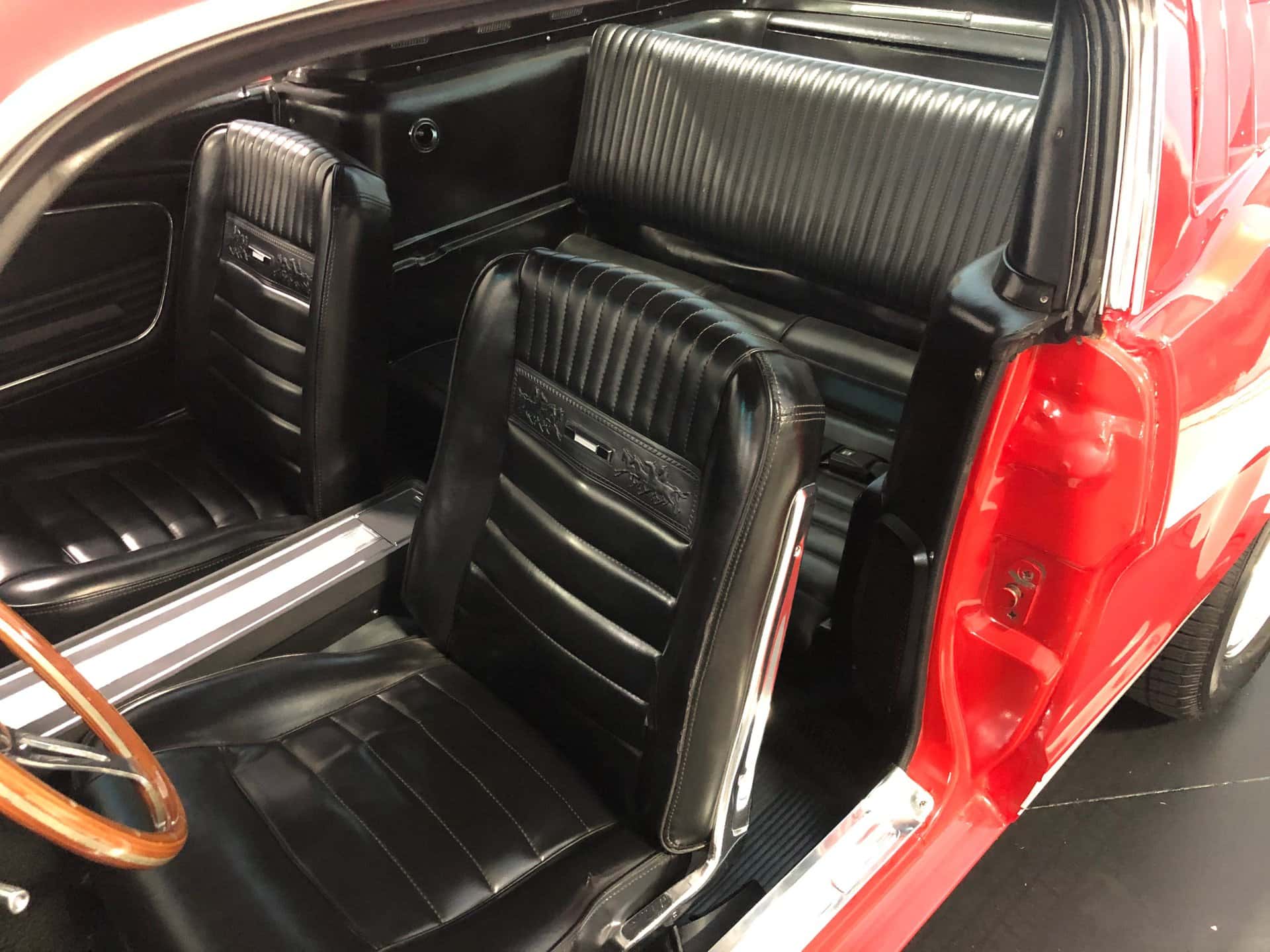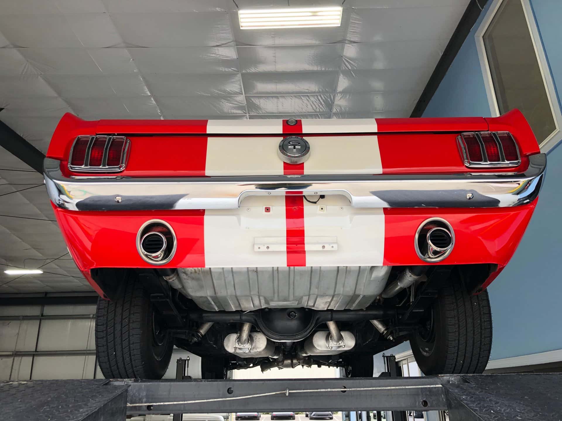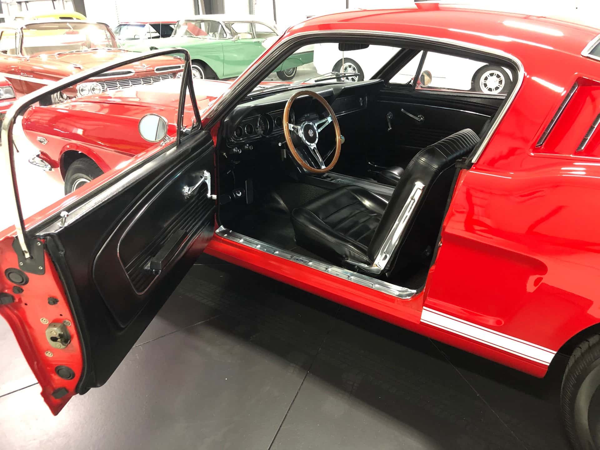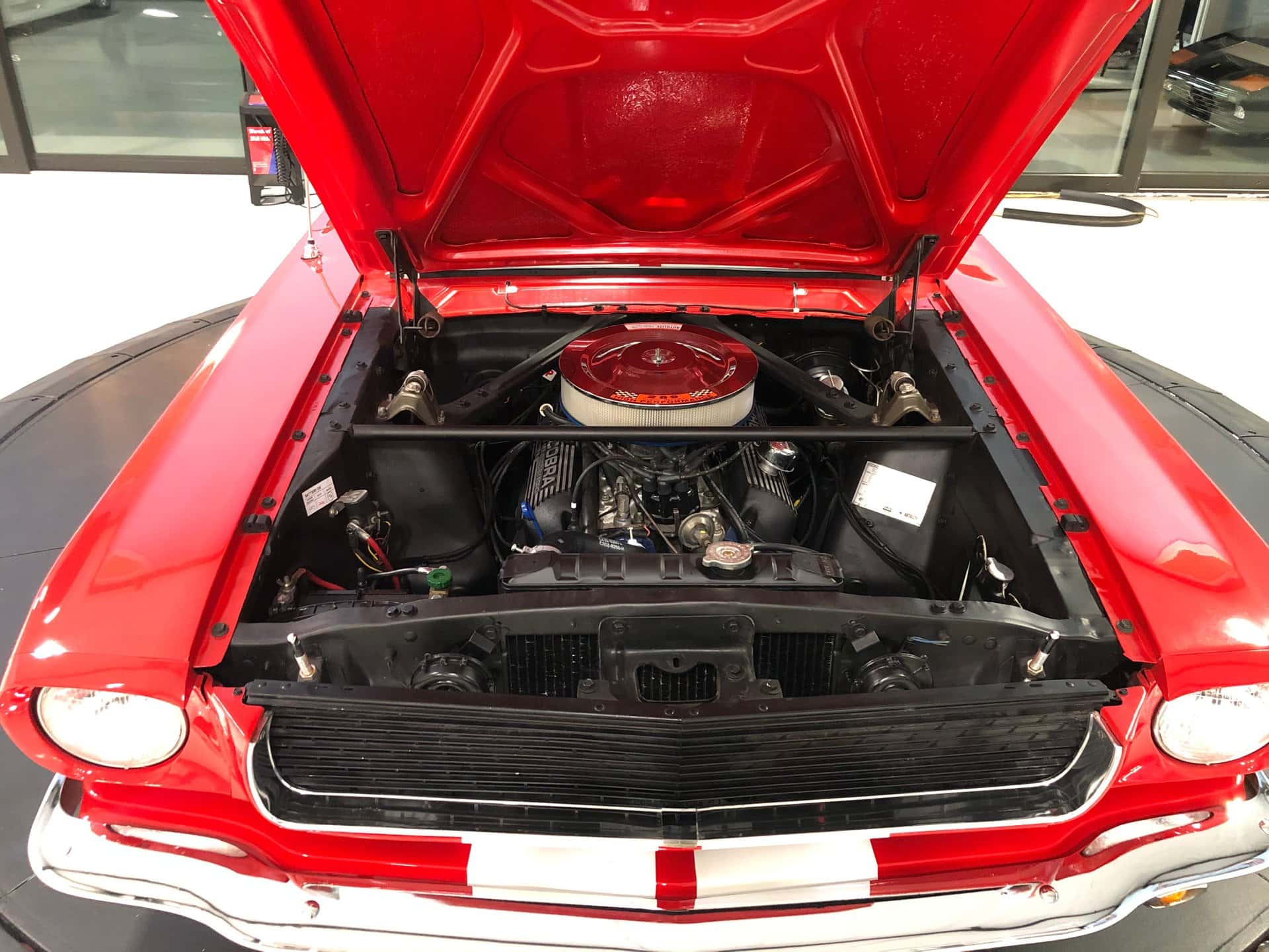 Why This Car? Exterior: This Mustang showcases a striking red paint job that gracefully follows the iconic body lines. It is complemented by full-length white racing stripes extending from the front to the back of the vehicle. Exterior features include a blacked-out grille with fog lamps, roof side vents, white rocker stripes on the sides, and a distinctive fuel filler cap positioned on the panel between the tail lamps. Dual exhausts exit underneath the vehicle, adding to its appealing aesthetics. Interior: The restored interior maintains a business-like atmosphere. The front seats feature the optional “Pony” black vinyl upholstery and are separated by the classic four-on-the-floor shifter with a white cue ball handle. The rear seat matches the front seats. The instrument panel houses the correct factory gauges, including a speedometer, fuel gauge, temperature gauge, oil pressure gauge, and ammeter displayed in five round dials. Other notable interior elements include a wood and polished steering wheel, a radio system, a floor console, and black carpeting. Mechanical: This Mustang is equipped with a 289 cubic inch V-8 engine, that produced 200 horsepower, as indicated by the Vin number. The engine features a correctly painted blue block and presents well with a chrome open-element air cleaner, black finned aluminum Cobra valve covers, a performance carburetor mounted on an aluminum intake, and tube headers. The engine compartment is clean and meticulously detailed. Call us today and get your dream car!