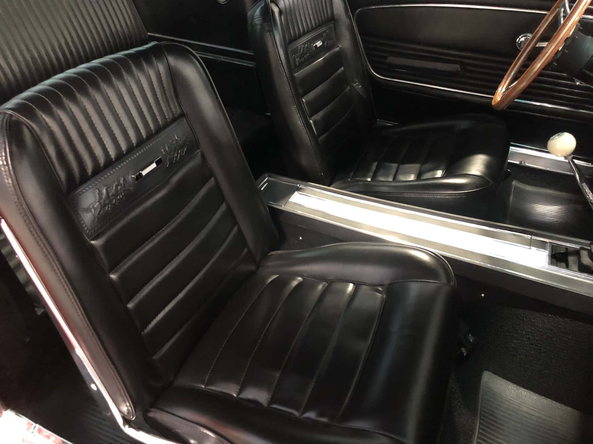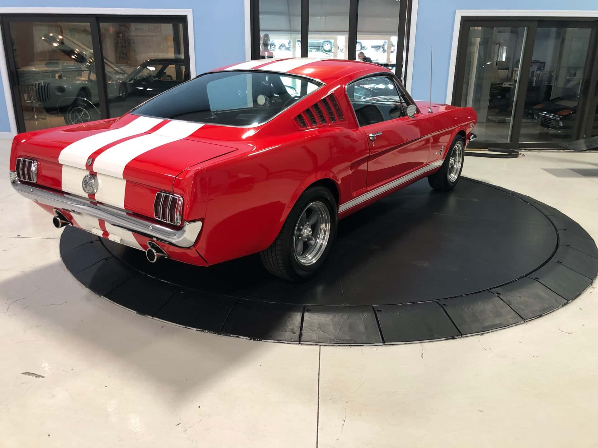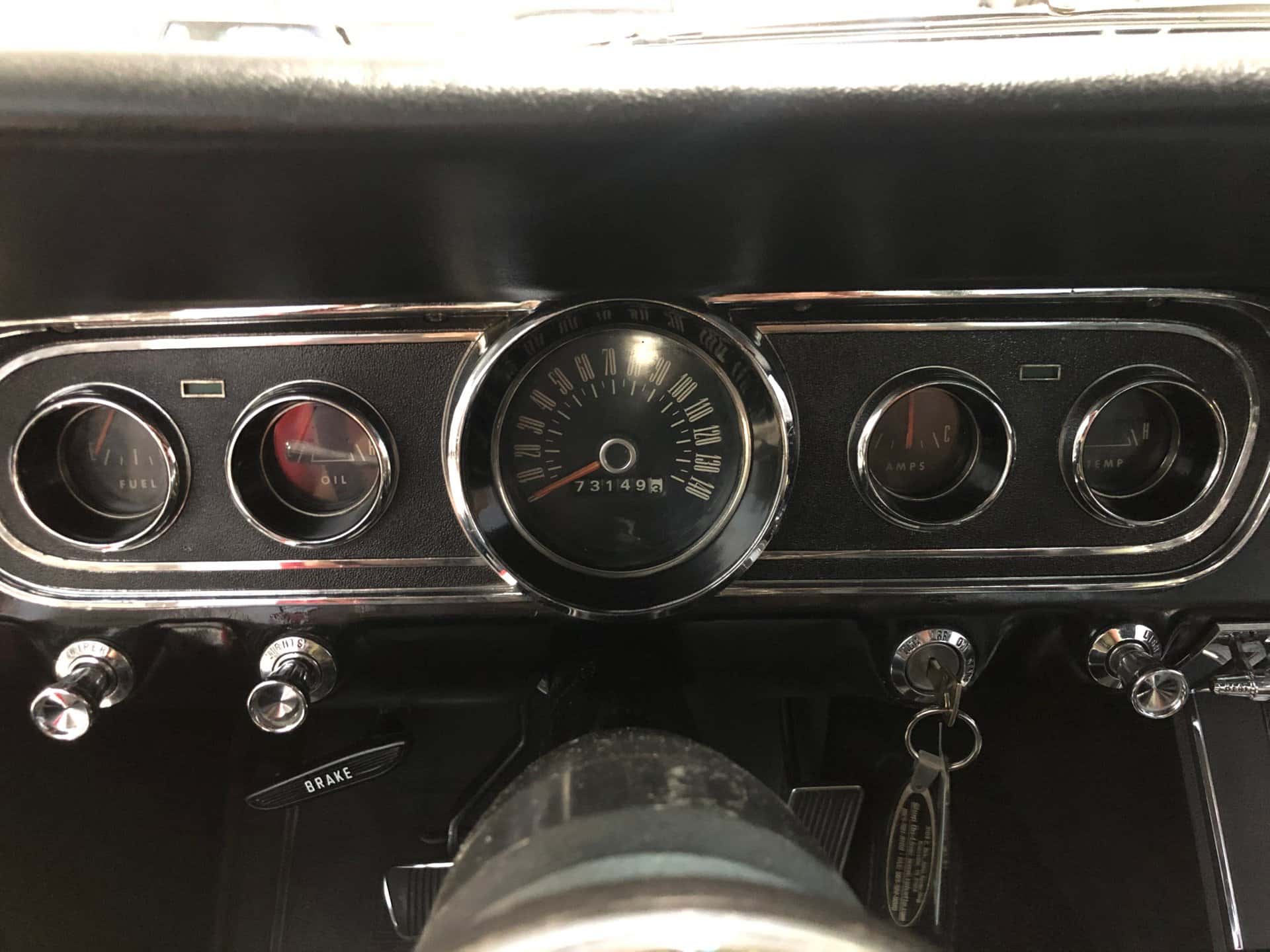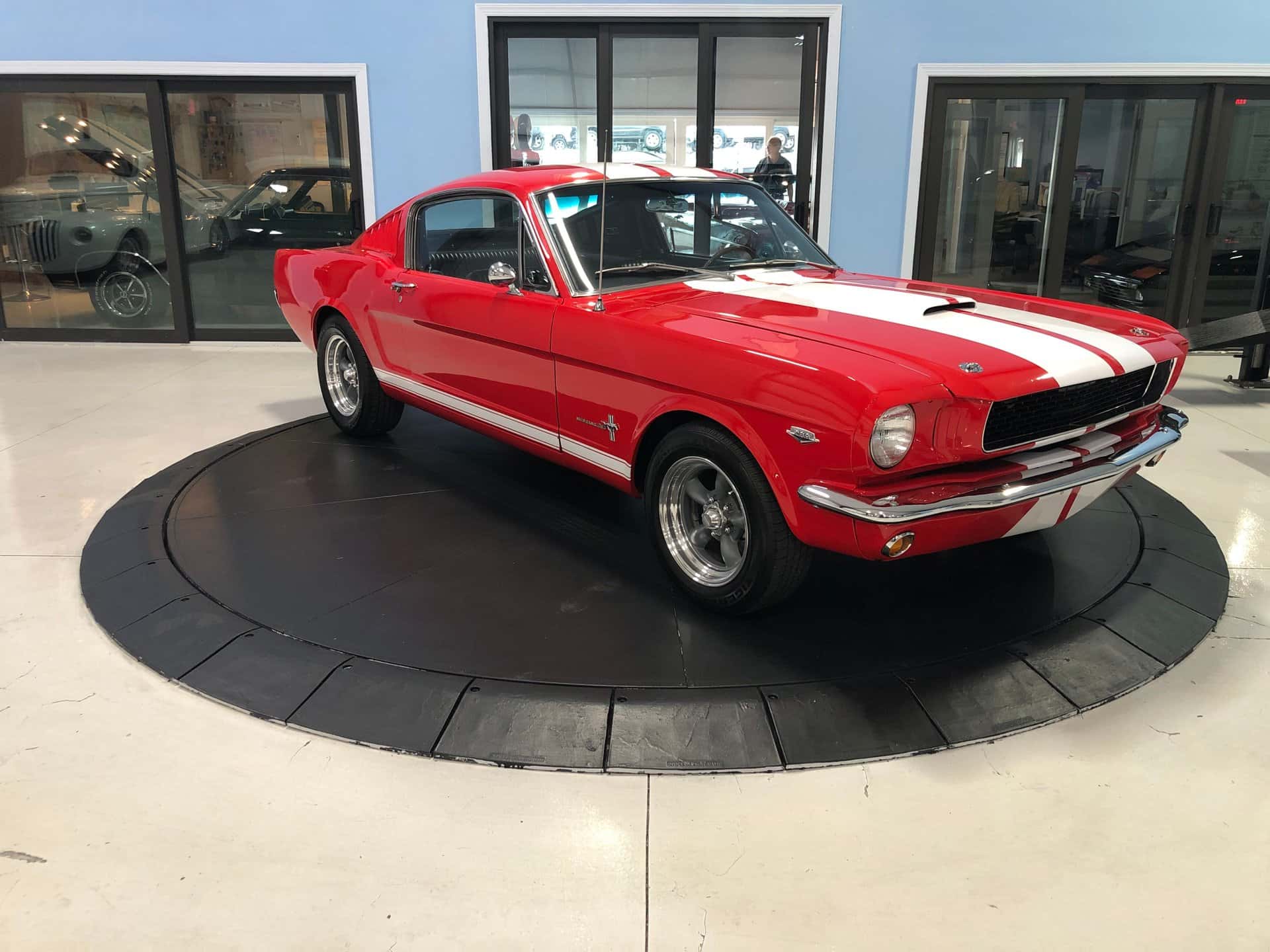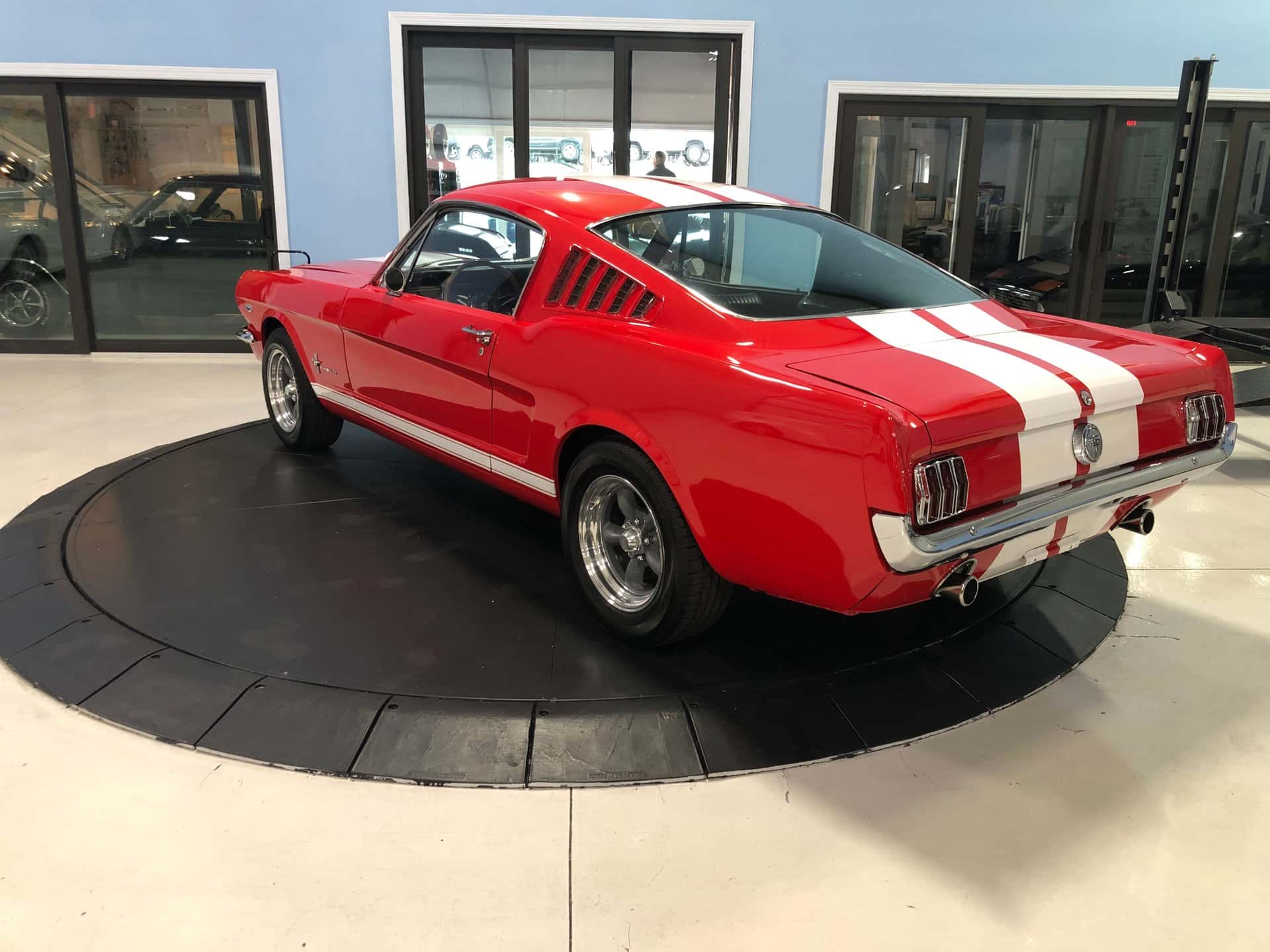 Why This Car? Exterior: This Mustang showcases a striking red paint job that gracefully follows the iconic body lines. It is complemented by full-length white racing stripes extending from the front to the back of the vehicle. Exterior features include a blacked-out grille with fog lamps, roof side vents, white rocker stripes on the sides, and a distinctive fuel filler cap positioned on the panel between the tail lamps. Dual exhausts exit underneath the vehicle, adding to its appealing aesthetics. Interior: The restored interior maintains a business-like atmosphere. The front seats feature the optional “Pony” black vinyl upholstery and are separated by the classic four-on-the-floor shifter with a white cue ball handle. The rear seat matches the front seats. The instrument panel houses the correct factory gauges, including a speedometer, fuel gauge, temperature gauge, oil pressure gauge, and ammeter displayed in five round dials. Other notable interior elements include a wood and polished steering wheel, a radio system, a floor console, and black carpeting. Mechanical: This Mustang is equipped with a 289 cubic inch V-8 engine, that produced 200 horsepower, as indicated by the Vin number. The engine features a correctly painted blue block and presents well with a chrome open-element air cleaner, black finned aluminum Cobra valve covers, a performance carburetor mounted on an aluminum intake, and tube headers. The engine compartment is clean and meticulously detailed. Call us today and get your dream car!