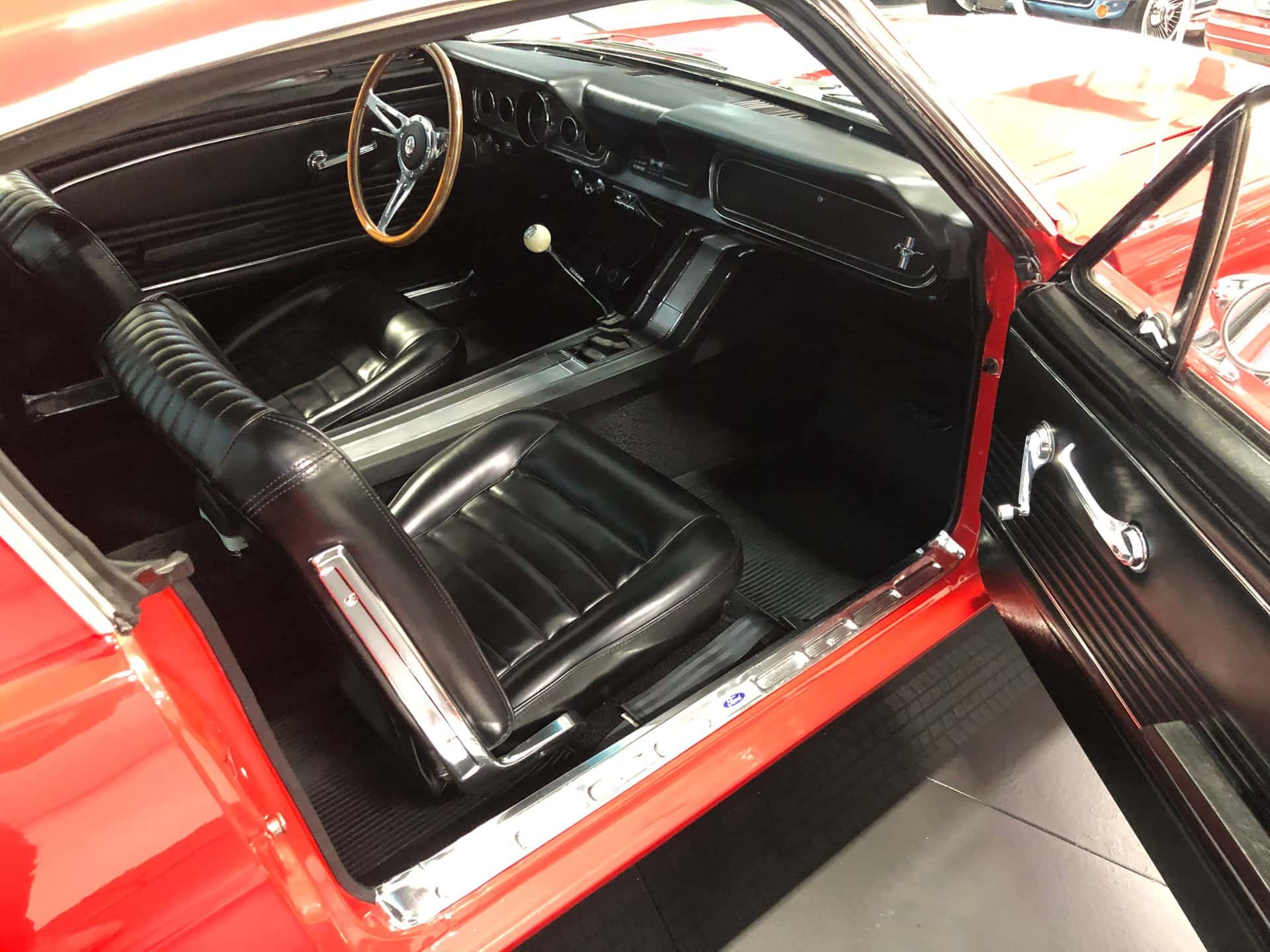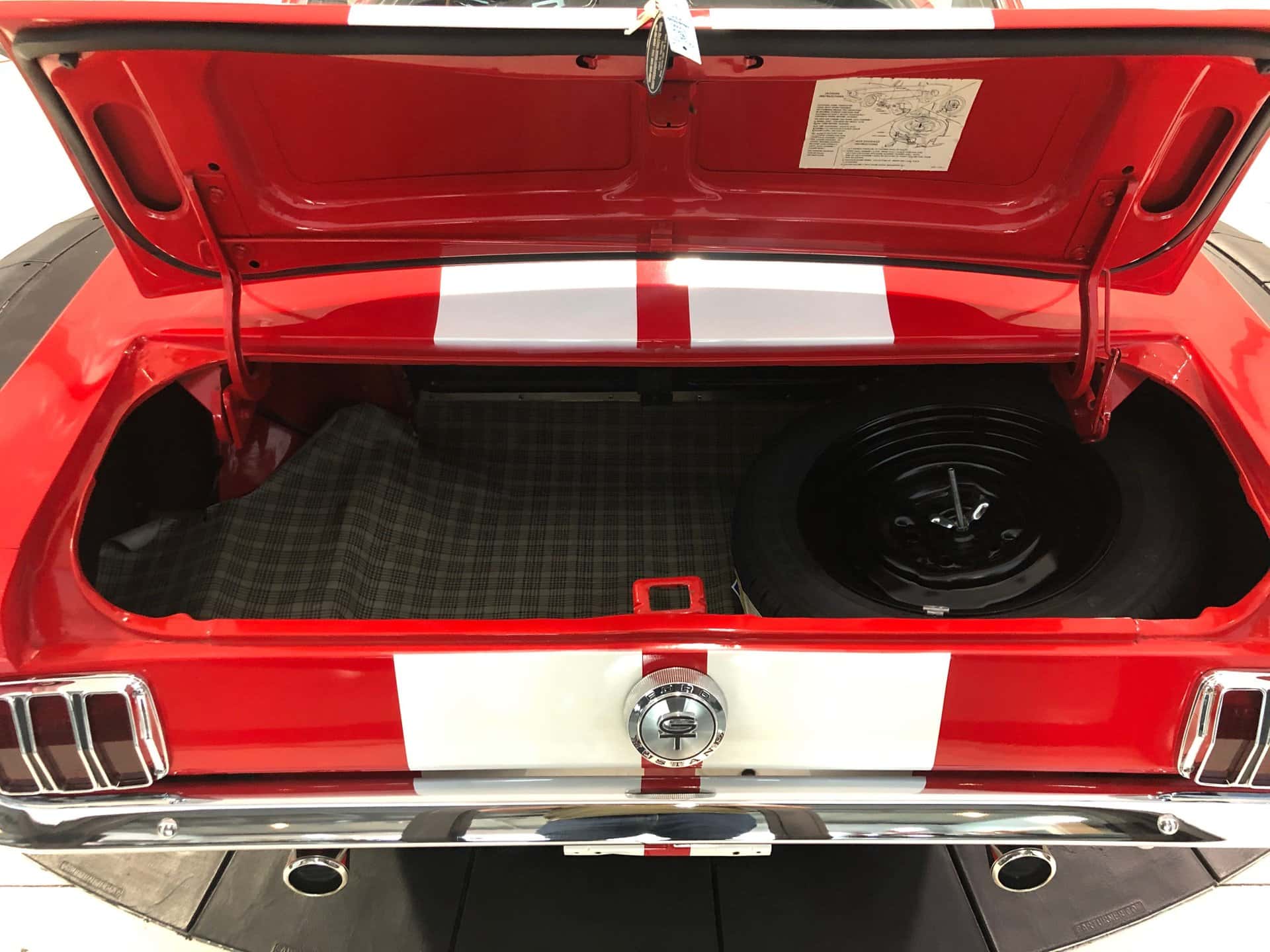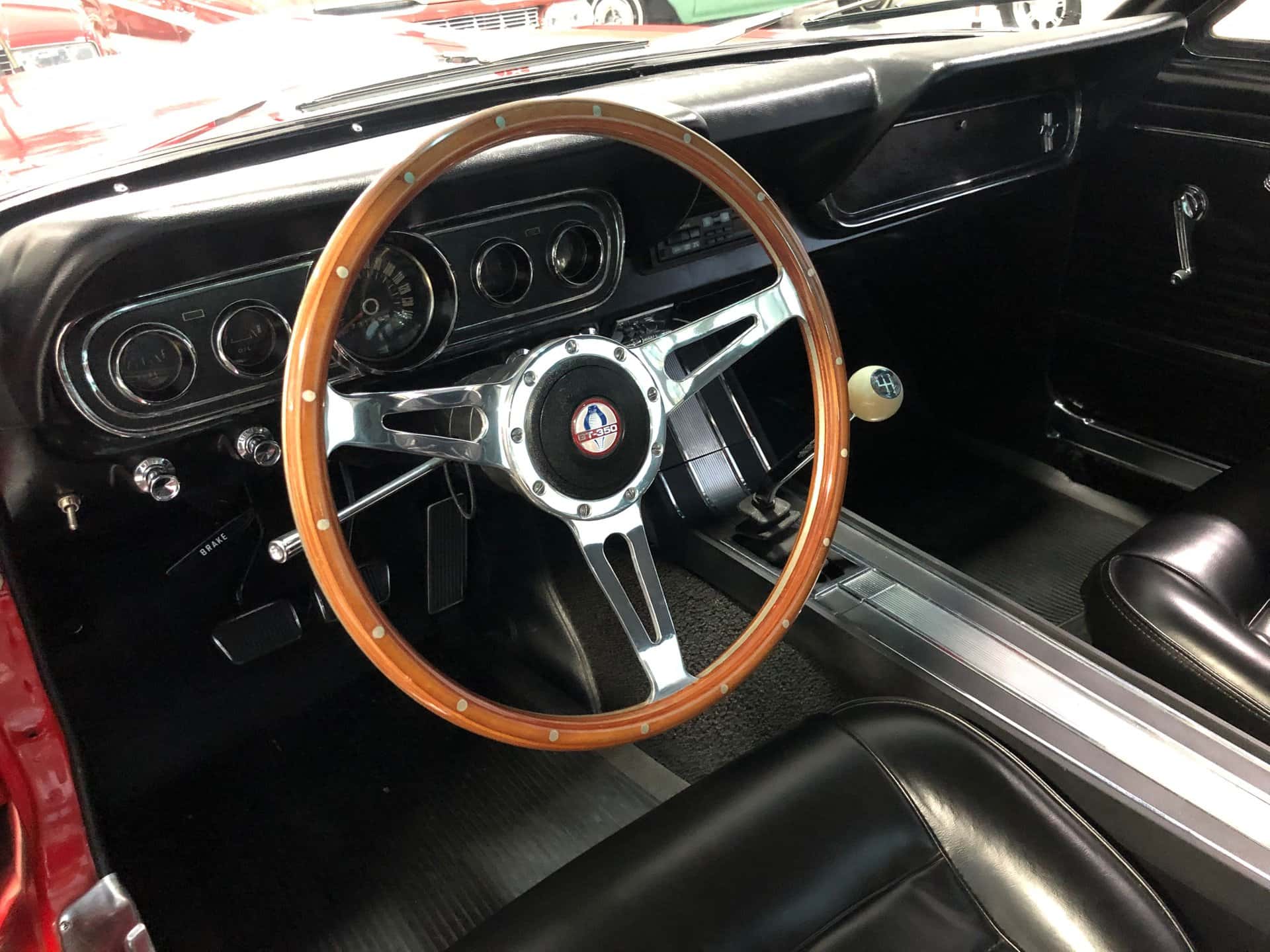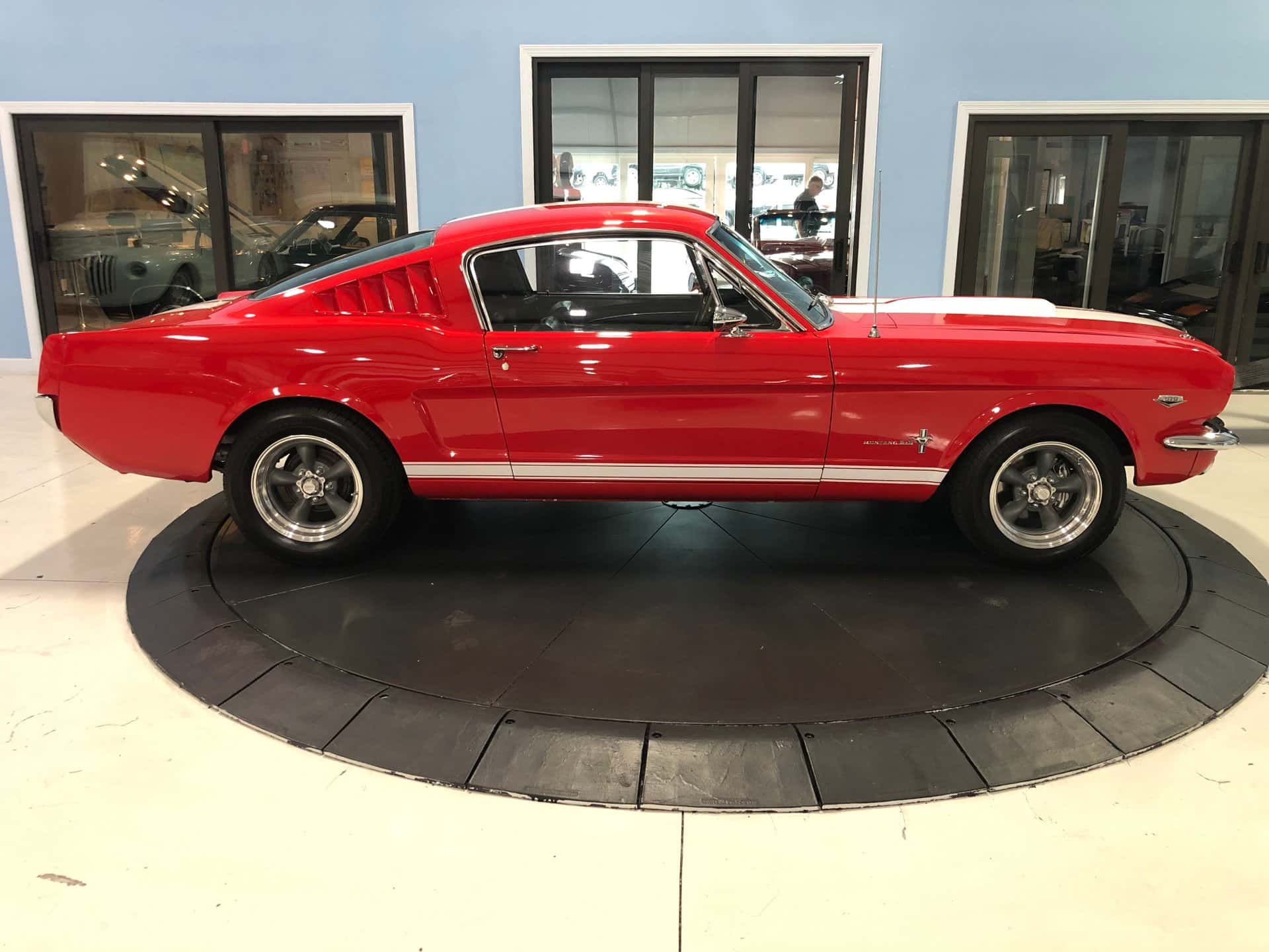 Why This Car? Exterior: This Mustang showcases a striking red paint job that gracefully follows the iconic body lines. It is complemented by full-length white racing stripes extending from the front to the back of the vehicle. Exterior features include a blacked-out grille with fog lamps, roof side vents, white rocker stripes on the sides, and a distinctive fuel filler cap positioned on the panel between the tail lamps. Dual exhausts exit underneath the vehicle, adding to its appealing aesthetics. Interior: The restored interior maintains a business-like atmosphere. The front seats feature the optional “Pony” black vinyl upholstery and are separated by the classic four-on-the-floor shifter with a white cue ball handle. The rear seat matches the front seats. The instrument panel houses the correct factory gauges, including a speedometer, fuel gauge, temperature gauge, oil pressure gauge, and ammeter displayed in five round dials. Other notable interior elements include a wood and polished steering wheel, a radio system, a floor console, and black carpeting. Mechanical: This Mustang is equipped with a 289 cubic inch V-8 engine, that produced 200 horsepower, as indicated by the Vin number. The engine features a correctly painted blue block and presents well with a chrome open-element air cleaner, black finned aluminum Cobra valve covers, a performance carburetor mounted on an aluminum intake, and tube headers. The engine compartment is clean and meticulously detailed. Call us today and get your dream car!