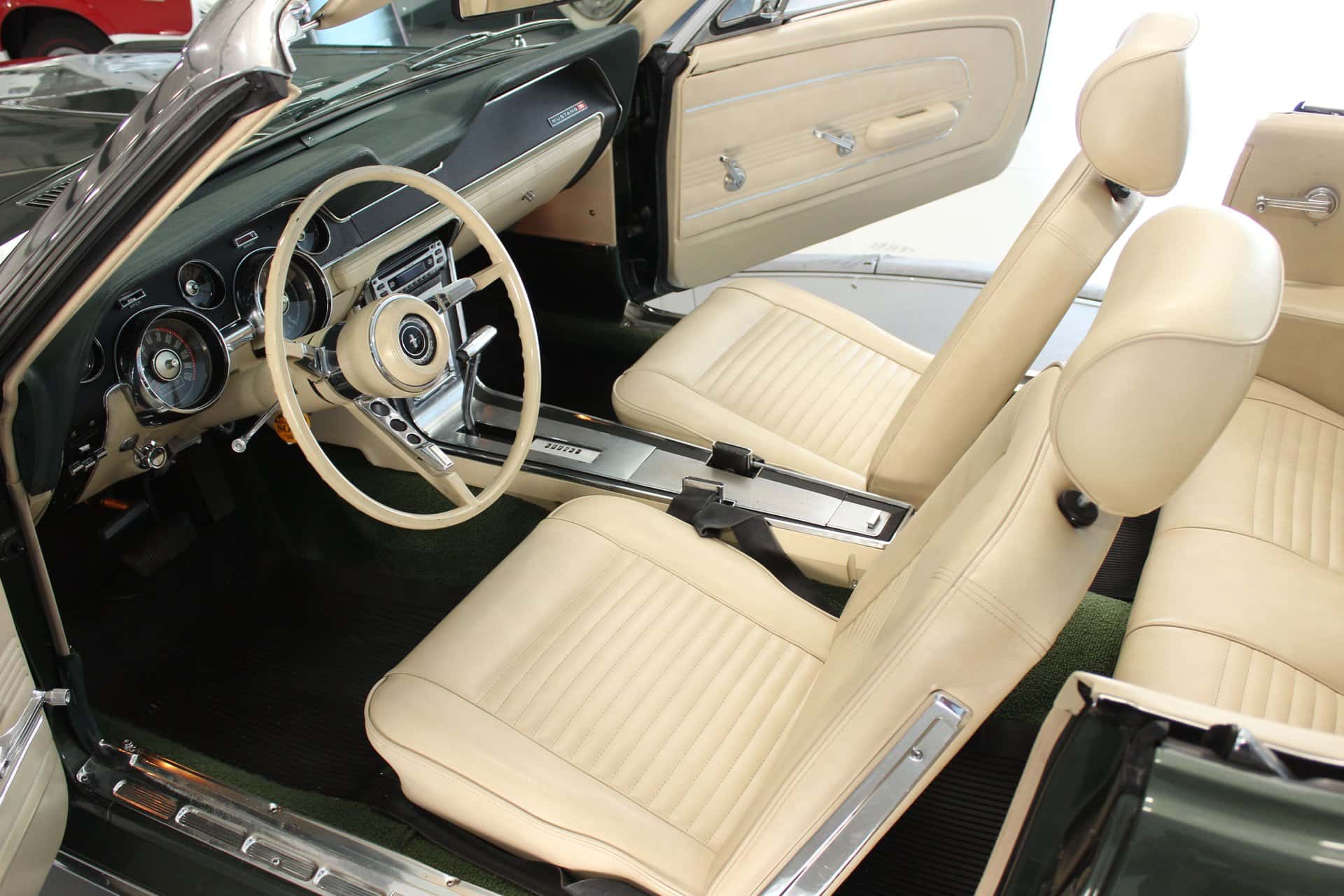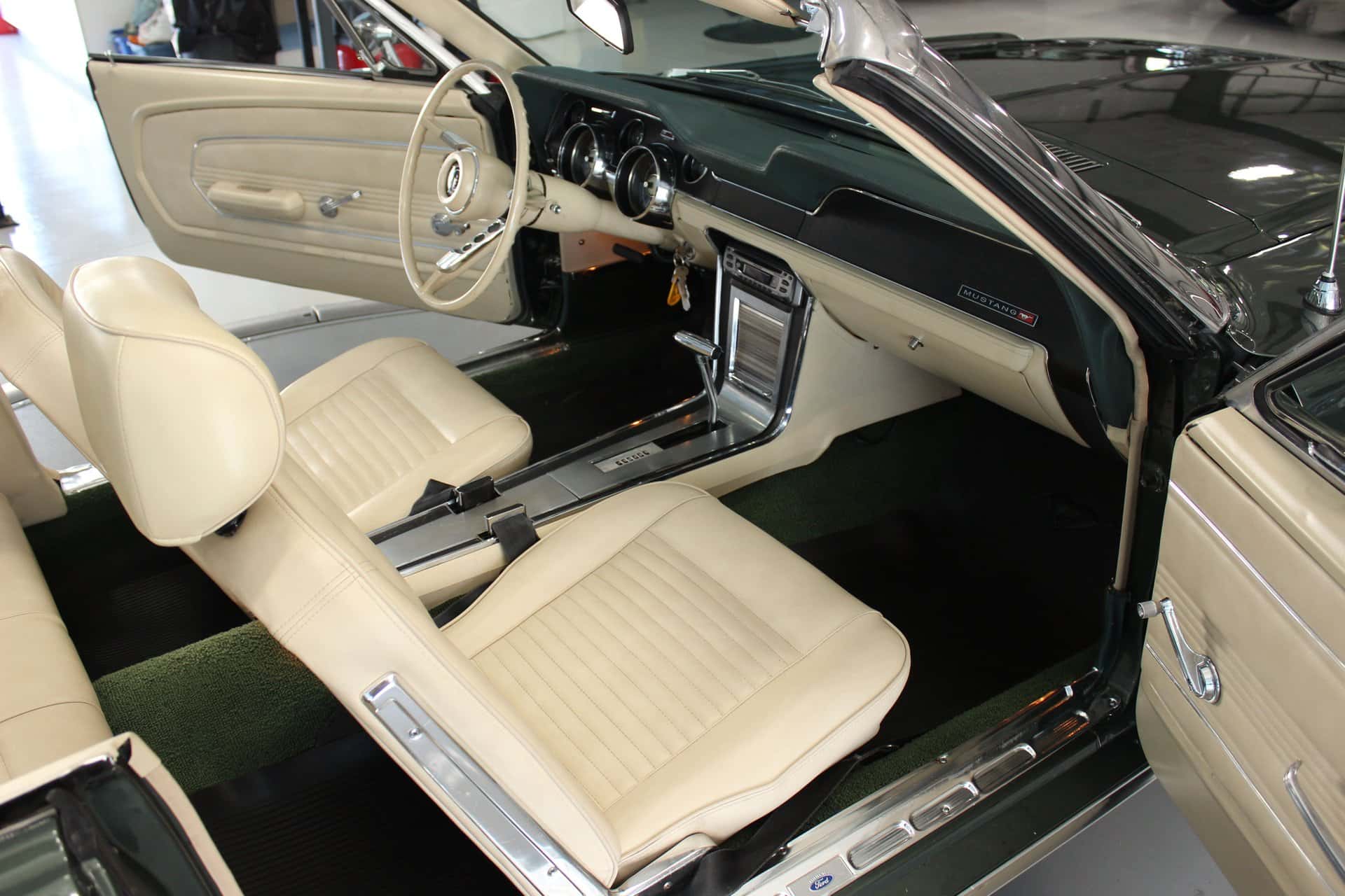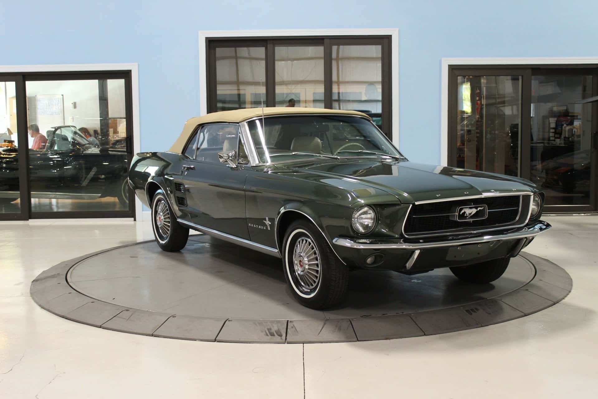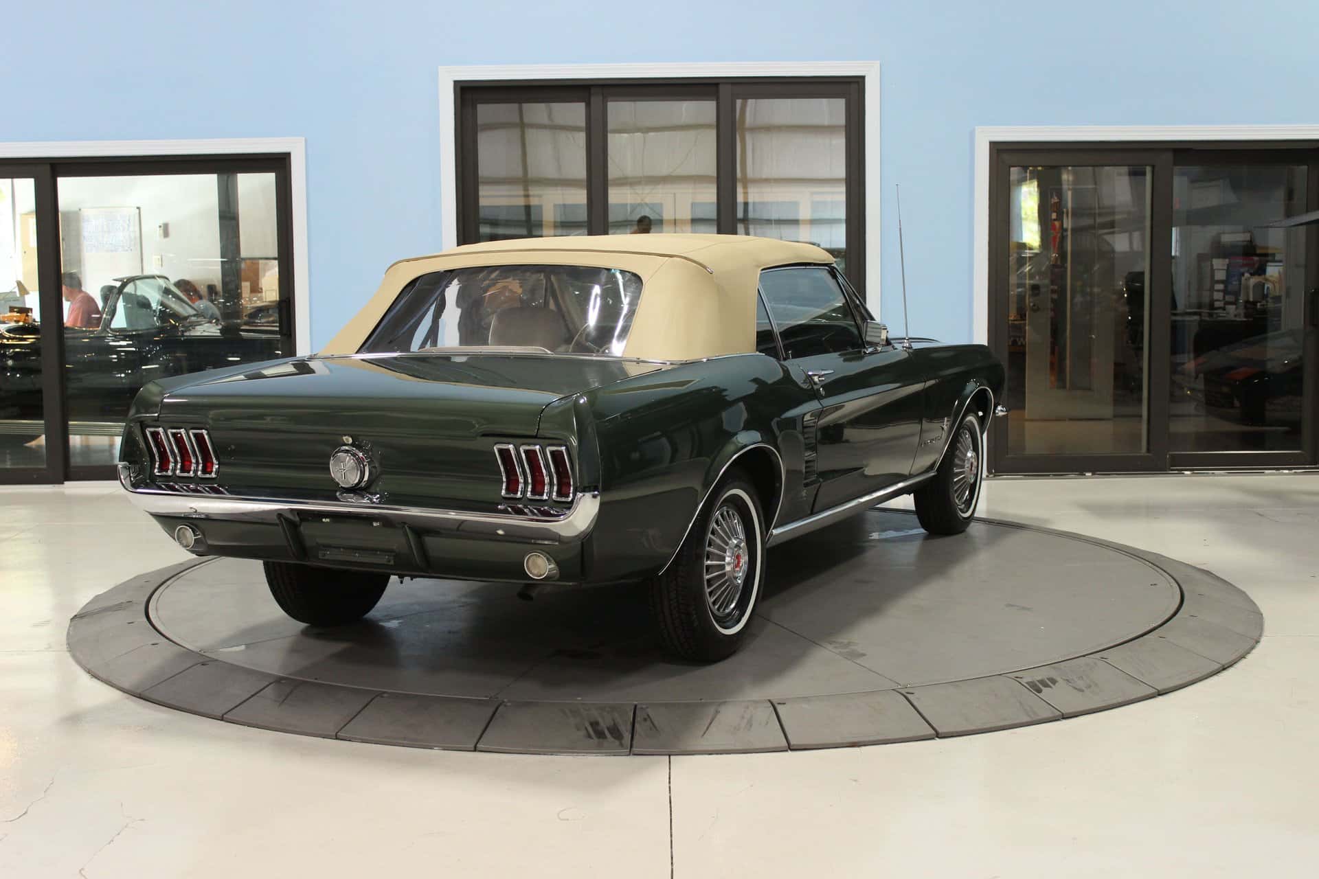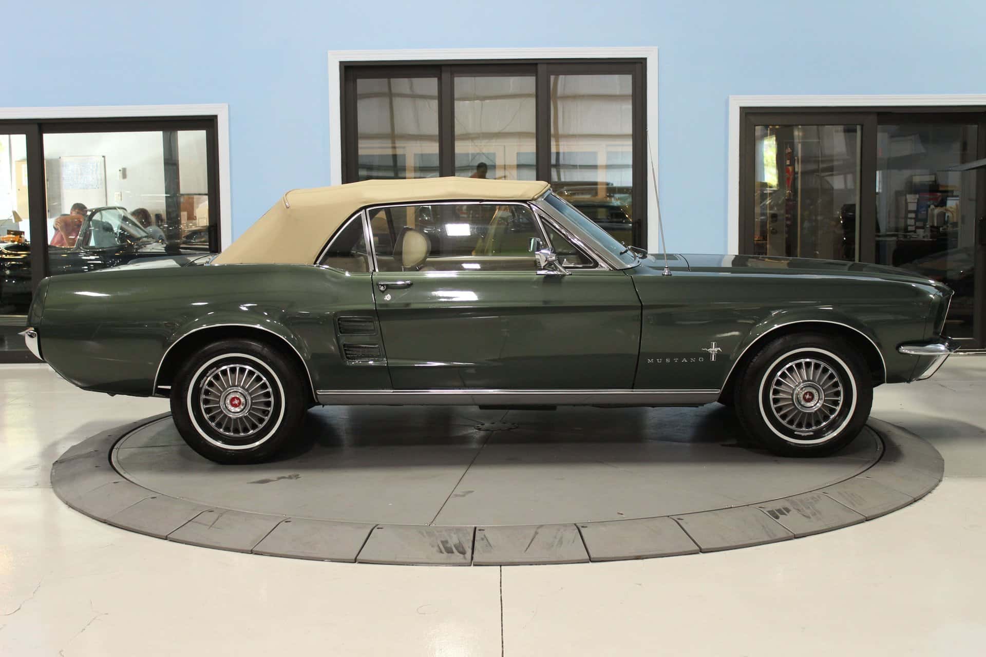 Why This Car? Take Action Now! This beauty features a tan convertible top and interior that will captivate your senses. Equipped with a fuel-efficient six-cylinder engine and an efficient drivetrain, this Mustang allows you to enjoy the ride without breaking the bank. Mechanical Specifications: Under the hood, you’ll find the six-cylinder 200 cubic inch engine, delivering approximately 120 horsepower. The engine compartment is meticulously detailed, featuring correct blue painted valve covers and a chrome air cleaner atop a performance carburetor. Upgrades include a newer distributor, spark plug wires, exhaust manifold, and power steering, among other factory components. The Mustang is equipped with a floor-mounted shifter and an automatic transmission, ensuring smooth shifts. It runs and drives excellently on whitewall tires mounted on steel wheels adorned with factory hubcaps. You’ll be amazed by the cleanliness of the undercarriage, a testament to its care and maintenance. Interior: Step into the convertible’s interior, adorned with tan bucket seats, complemented by green carpeting and matching tan door panels. The back bench seat continues the seamless color scheme. The tan three-spoke sport steering wheel adds a touch of elegance, while the full factory gauges and impressive AM/FM stereo radio system complete the interior experience. Exterior: This 1967 Mustang Convertible commands attention with its striking dark green exterior and tan convertible top. Standout features include factory side scoops, Mustang emblems, recessed turn signals, and bright metal rocker panel moldings. Not to be missed is the iconic rear gas tank cap, adding to its timeless appeal. Don’t let this dream car slip away. Take action now by calling us to make it yours. The price includes free delivery for up to 600 miles, ensuring a convenient and seamless buying experience. Fulfill your automotive dreams with this remarkable 1967 Mustang Convertible.