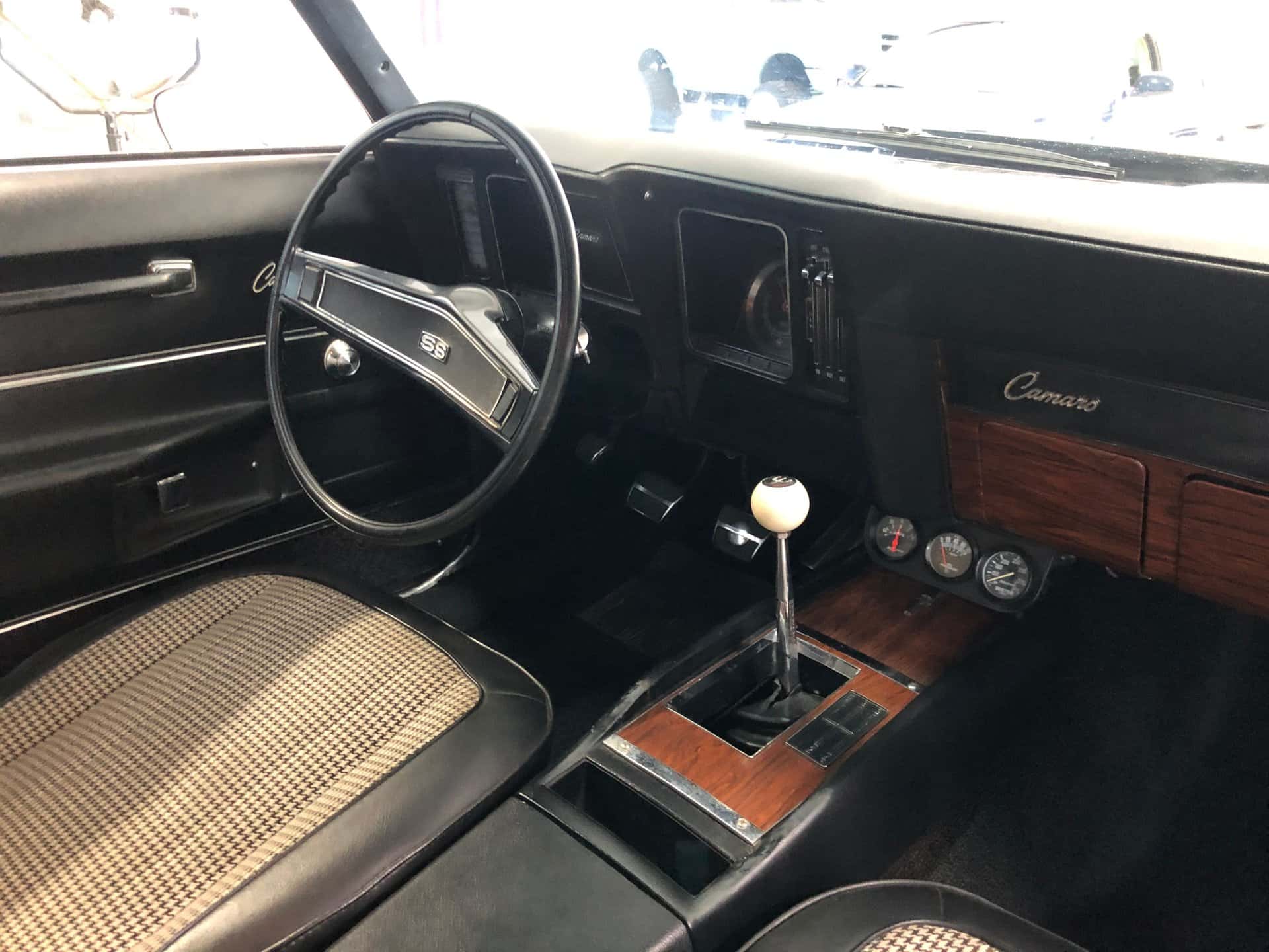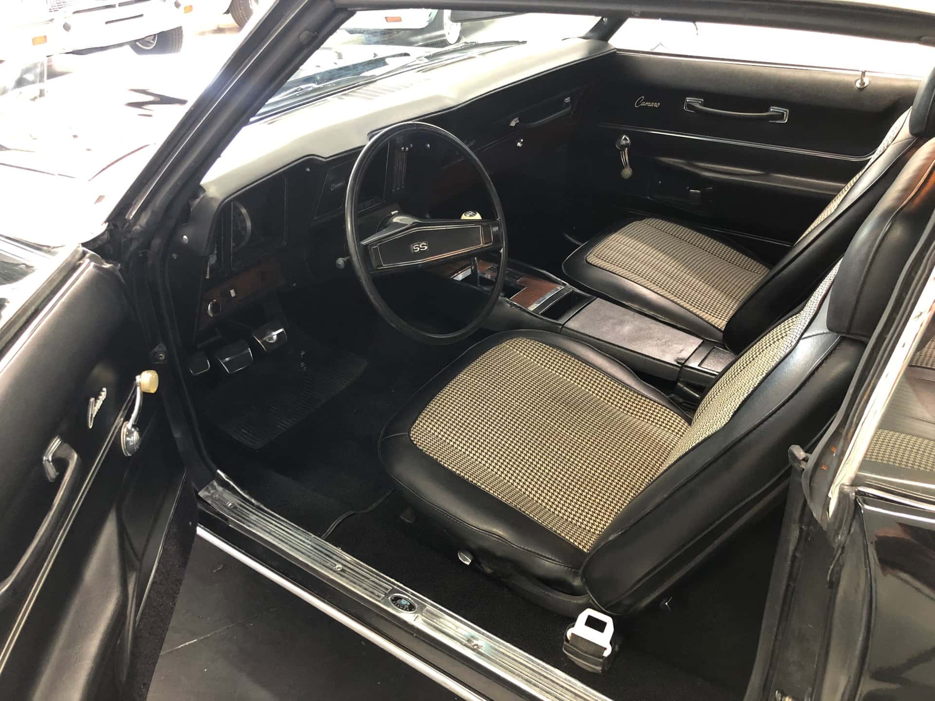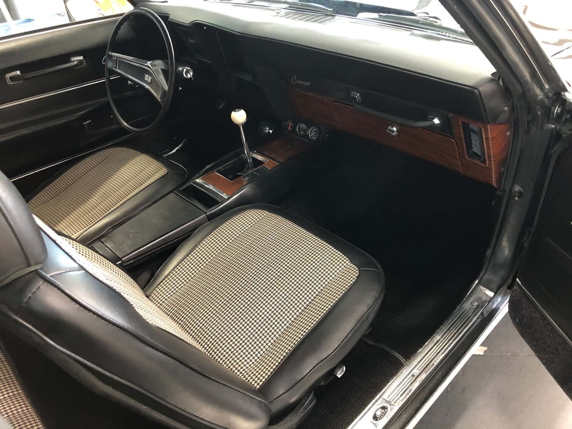 Why This Car? Exterior: The 1969 Camaro exudes a stealthy and sporty aura with its black paint finish. The grille, chrome trim, headlights, quarter panels, rear valance panel, and all Camaro and SS 396 badges contribute to its attractive appearance. Our SS Camaro boasts a cowl hood, a rear spoiler, a substantial dual exhaust system positioned under the rear bumper, and rides on BF Goodrich Radial TA tires mounted on factory Rallye wheels featuring chrome trim rings and center caps. The vehicle’s handling is enhanced by the H.D. suspension with front disc brakes. Interior: The twin bucket seat interior is upholstered in black with Houndstooth accents, showcasing a restored appearance reminiscent of its factory condition. Under the dash, additional gauges have been added. The dash and center console feature wood grain trim, and the chrome 4-speed shifter with a white shifter ball is mounted on the floor. The dash retains all the original working gauges. Other interior elements include black carpeting, factory trim, well-crafted door panels and trim, and matching rear seats. Mechanical: This Chevrolet Camaro is powered by a high-performance 454 cubic inch engine, which boasts numerous performance and appearance enhancements. These include a Holley aluminum manifold, a Holley performance carburetor, aluminum heads, tube headers, factory B.B. chrome valve covers with correct decals, a chrome open air cleaner, a cam and kit, and a performance ignition system with spark plugs and wires. The vehicle also features power steering and brakes.Power is transmitted to the 10-bolt rear end through a factory Chevy 4-speed transmission. Call us today and get your dream car!