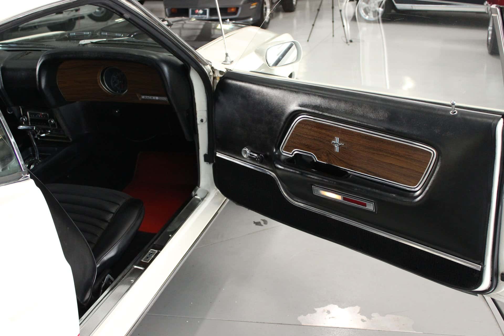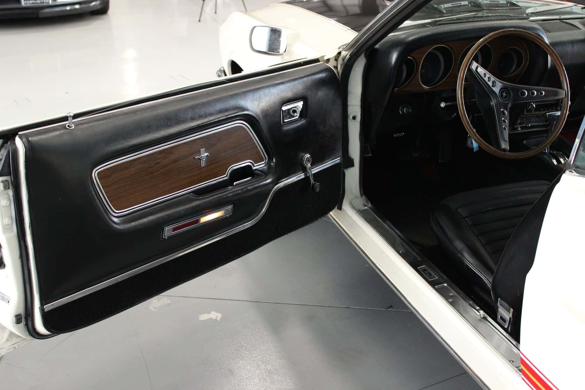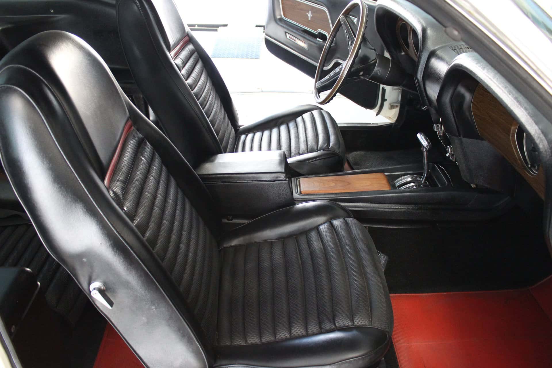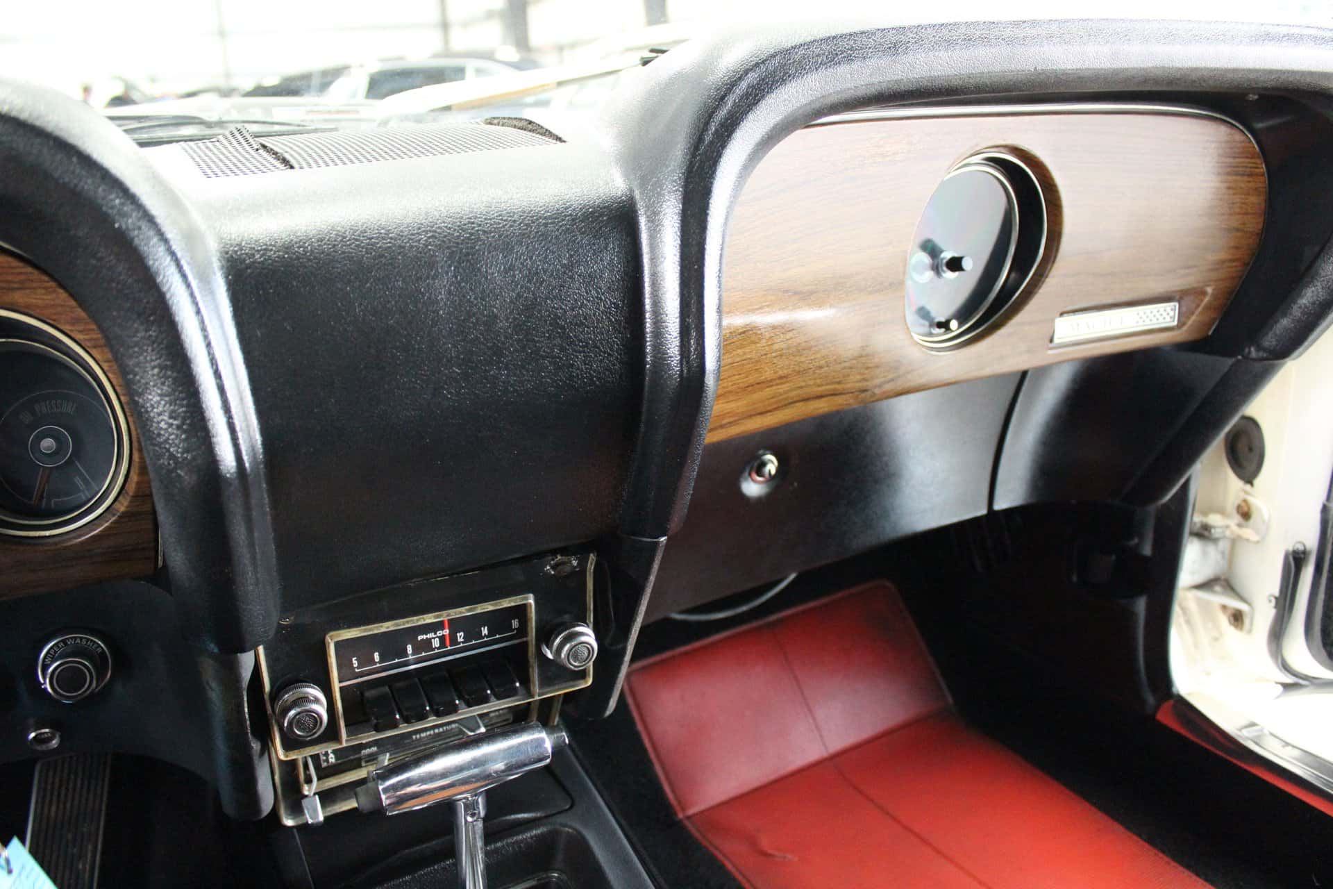 This particular model holds a special allure as it is equipped with the powerful big block 390 engine, making it a true performer. Under the hood, you’ll find the correct black scooped hood that conceals the mighty 390 Cubic Inch big block engine. This engine generates an impressive 320 horsepower at 4600 rpm and an astonishing 427 ft. lb. of torque at 3200 rpm. It retains a factory stock appearance, complete with the correct Ford Racing Blue air cleaner, valve covers, and engine block. Additionally, the car boasts power steering, power brakes, and other factory components, all meticulously arranged in a meticulously clean and detailed engine compartment. The 390 engine is seamlessly paired with a 3-speed automatic transmission, featuring a convenient floor console shifter. The car also features a dual exhaust system and front disc brakes, ensuring optimal performance and control. Completing the package are the correct factory wheels and Dunlap White Letter GT Qualifier tires, adding a touch of authenticity to the driving experience. Step inside the cabin, and you’ll be greeted by a period-correct original interior adorned with black bucket seats and molded door panels. Floor mats, a wood grain dash, a center console with an armrest, a wood steering wheel, and bright pedal pads complete the authentic 60s look, immersing you in a nostalgic atmosphere. From an exterior standpoint, this Mustang Fastback boasts solid panels beautifully enveloped in Wimbledon White paint, accentuated by bold red stripes along the sides. The blacked-out hood features the factory Ford hood scoop and hood pins, adding a touch of aggression and style to the car’s appearance. Dual sport mirrors and side scoops further enhance the car’s exterior allure, making it a truly captivating sight. Don’t miss the opportunity to own this remarkable Ford Mustang Fastback, equipped with the impressive big block 390 engine. Visit us today and prepare to embark on an exhilarating journey behind the wheel of this exceptional machine.