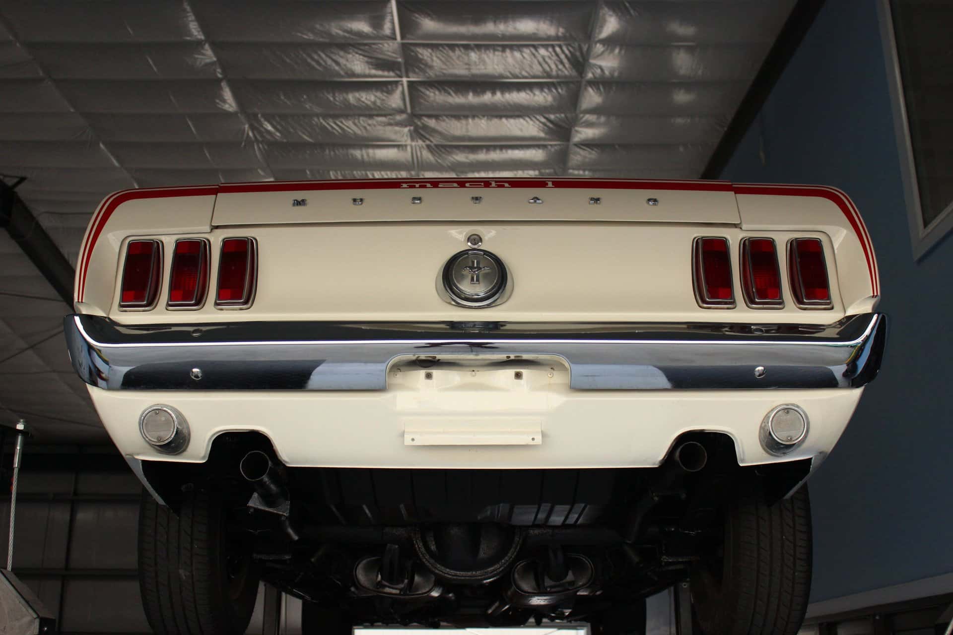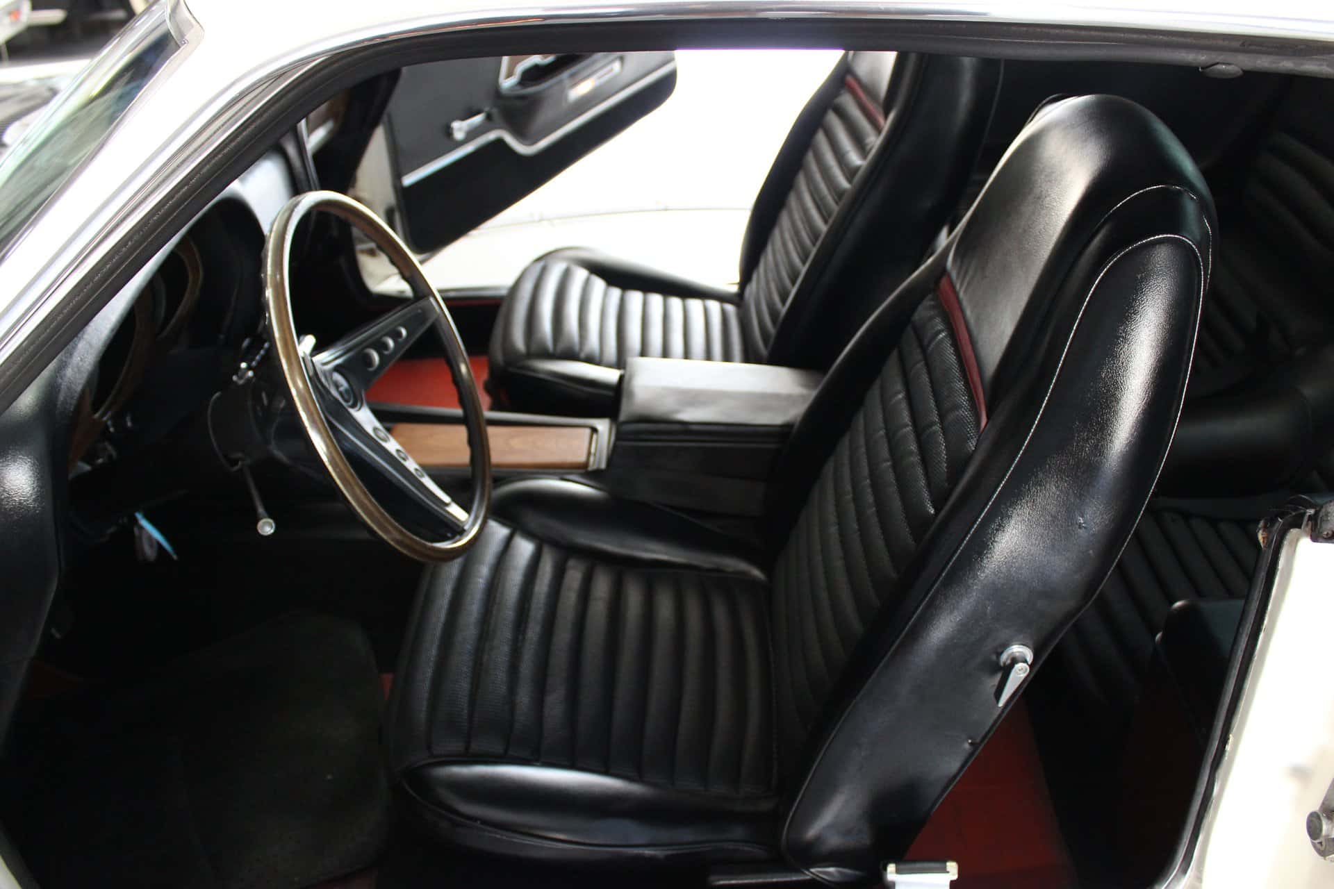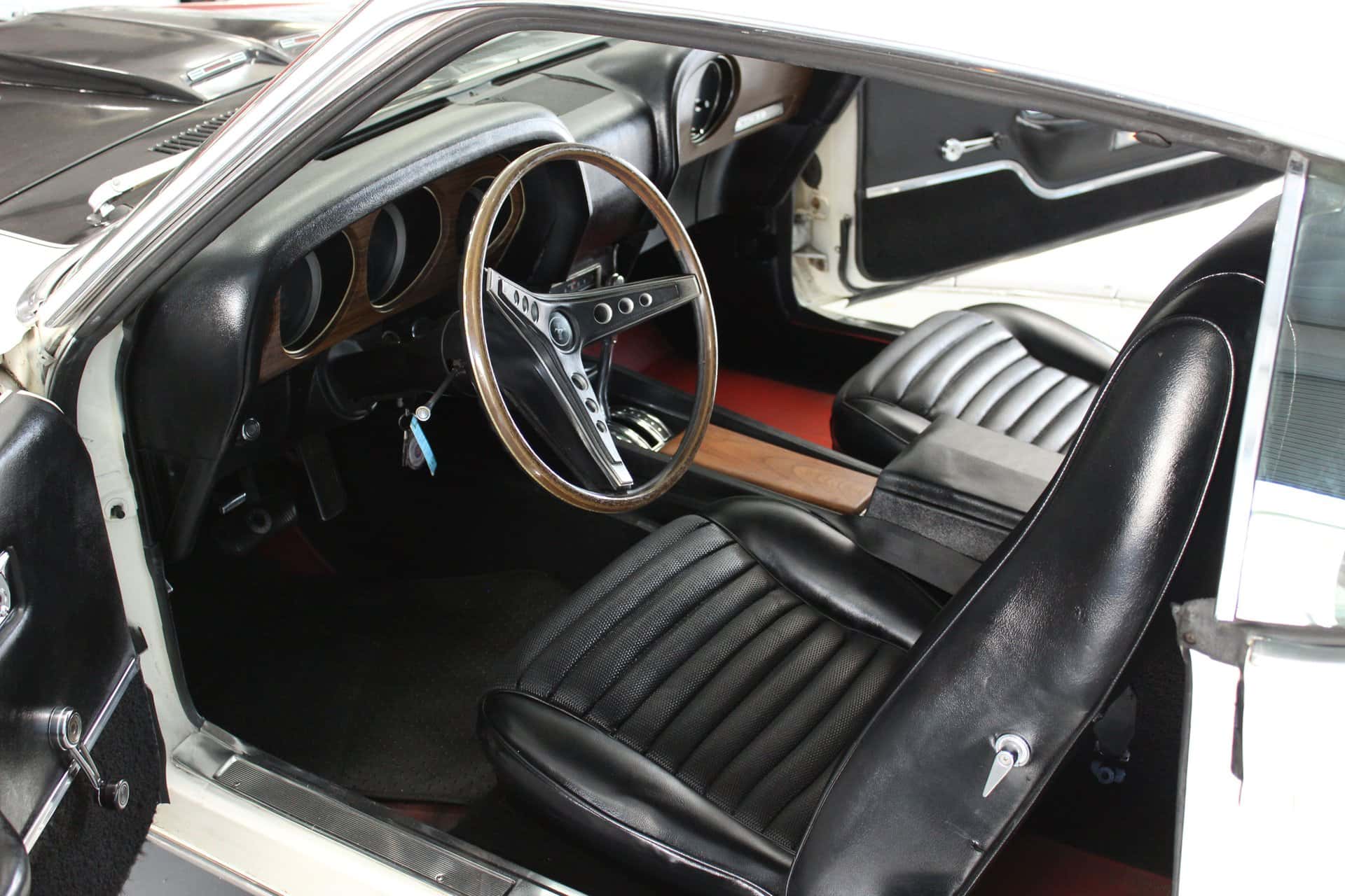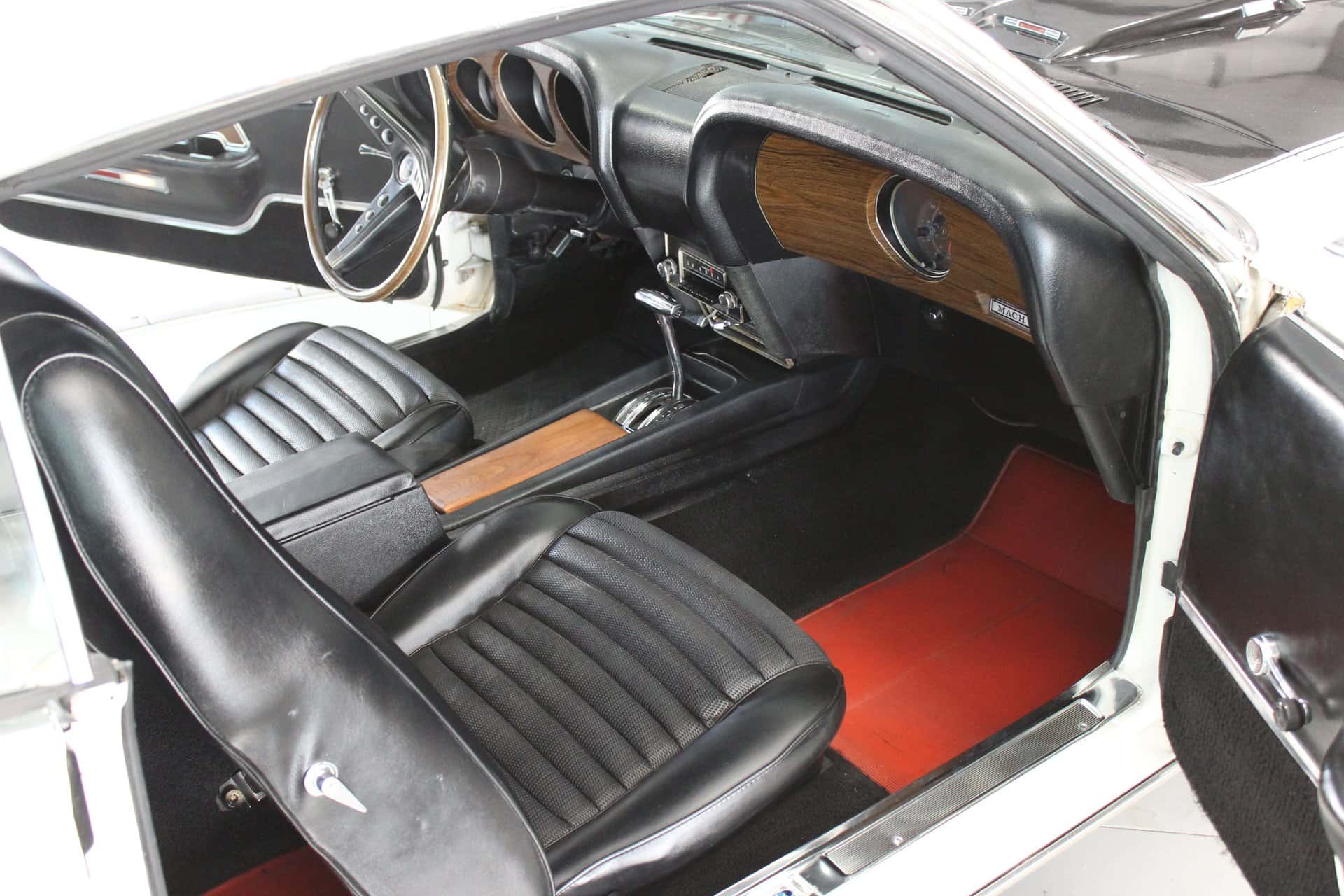 This particular model holds a special allure as it is equipped with the powerful big block 390 engine, making it a true performer. Under the hood, you’ll find the correct black scooped hood that conceals the mighty 390 Cubic Inch big block engine. This engine generates an impressive 320 horsepower at 4600 rpm and an astonishing 427 ft. lb. of torque at 3200 rpm. It retains a factory stock appearance, complete with the correct Ford Racing Blue air cleaner, valve covers, and engine block. Additionally, the car boasts power steering, power brakes, and other factory components, all meticulously arranged in a meticulously clean and detailed engine compartment. The 390 engine is seamlessly paired with a 3-speed automatic transmission, featuring a convenient floor console shifter. The car also features a dual exhaust system and front disc brakes, ensuring optimal performance and control. Completing the package are the correct factory wheels and Dunlap White Letter GT Qualifier tires, adding a touch of authenticity to the driving experience. Step inside the cabin, and you’ll be greeted by a period-correct original interior adorned with black bucket seats and molded door panels. Floor mats, a wood grain dash, a center console with an armrest, a wood steering wheel, and bright pedal pads complete the authentic 60s look, immersing you in a nostalgic atmosphere. From an exterior standpoint, this Mustang Fastback boasts solid panels beautifully enveloped in Wimbledon White paint, accentuated by bold red stripes along the sides. The blacked-out hood features the factory Ford hood scoop and hood pins, adding a touch of aggression and style to the car’s appearance. Dual sport mirrors and side scoops further enhance the car’s exterior allure, making it a truly captivating sight. Don’t miss the opportunity to own this remarkable Ford Mustang Fastback, equipped with the impressive big block 390 engine. Visit us today and prepare to embark on an exhilarating journey behind the wheel of this exceptional machine.