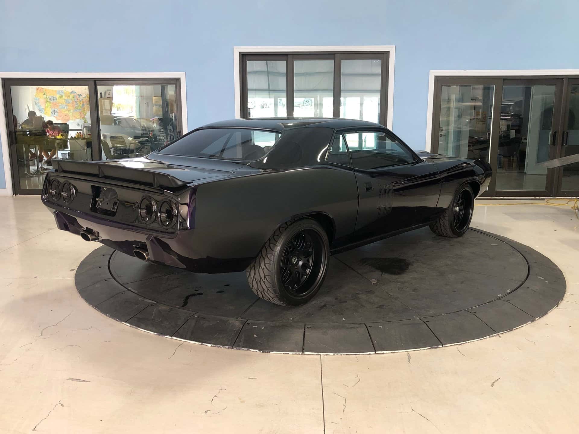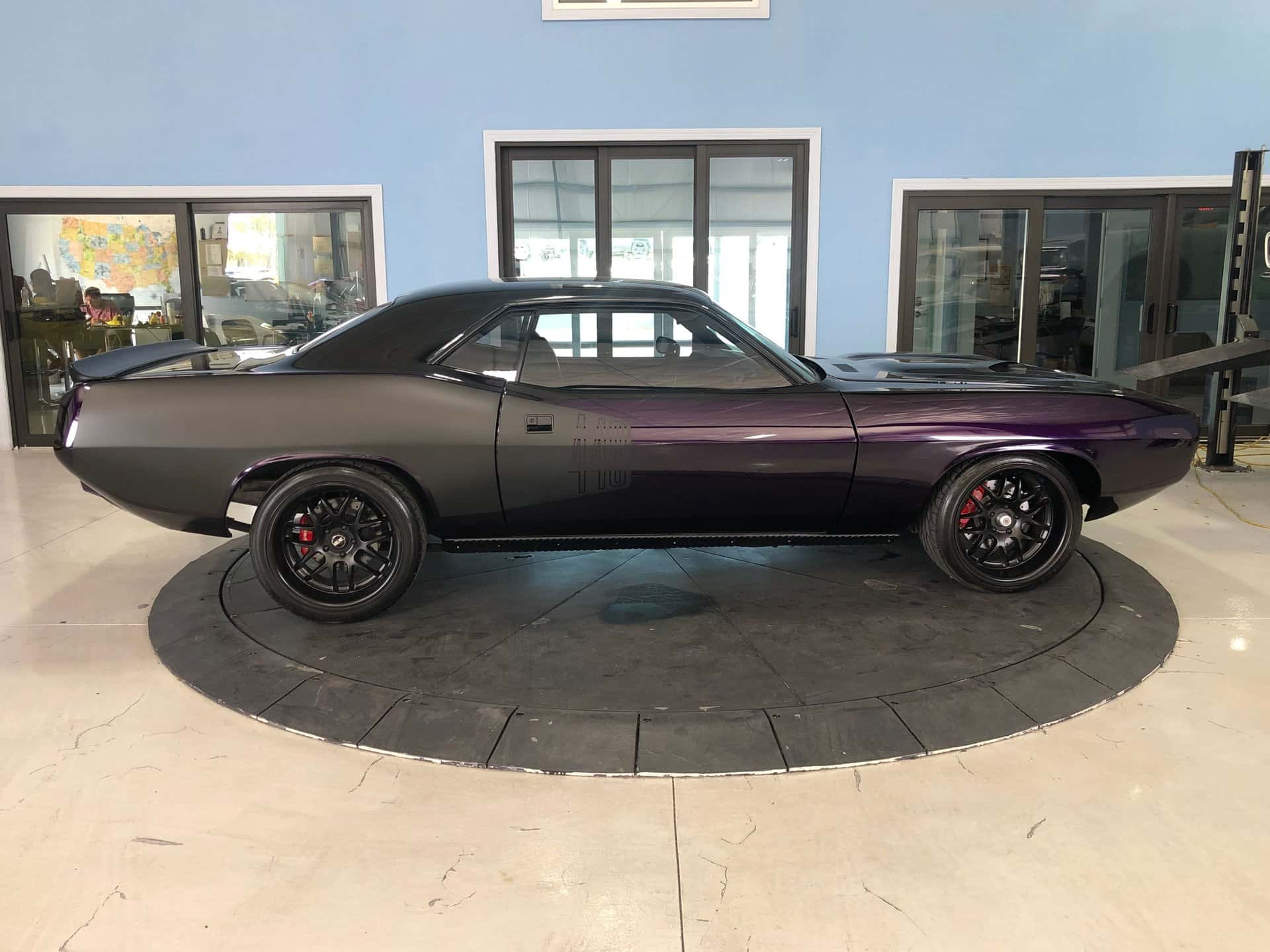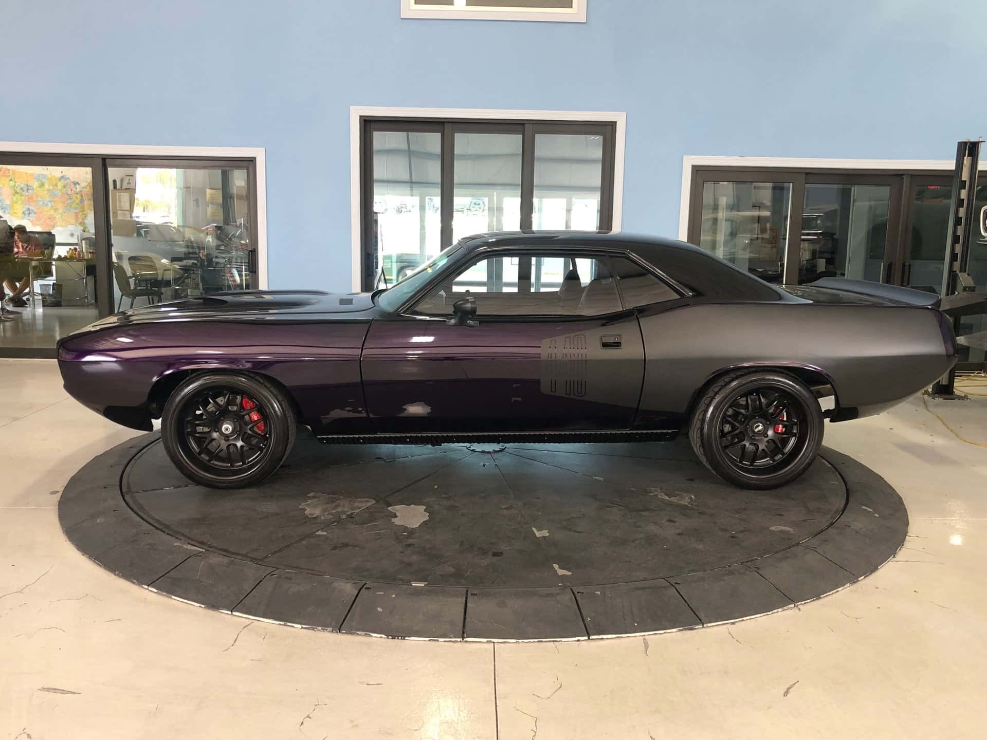 Why This Car? Exterior: The body lines of this Cuda have been restored to a better-than-original condition, and the purple paint shines brilliantly. Matte black “billboard” decals on the rear quarter panels proudly display the “440” cubic inch engine. The car features custom flush mount front grilles, hidden headlights, hood scoops, a rear spoiler, and twin racing mirrors, all adding to its aggressive and distinctive appearance. Interior: The black bucket seat interior is superbly maintained and retains a stock appearance, with a few modifications. Carbon fiber inserts adorn the dash and console, aftermarket performance gauges have been installed, purple Cuda’ logos are featured on the floor mats, and purple seat belts add a touch of flair. The rear seat and door panels maintain their stock appearance, as does the black carpet and headliner. The car is equipped with a black sport steering wheel and the famous “Pistol Grip” shifter mounted in the factory black floor console. Mechanical: The engine in this muscle car is significantly more powerful than the original 1973 stock engine. Originally a 440 cubic inch engine, it has been increased to a massive 513 cubic inches. It boasts numerous high-performance components, including a performance cam and kit, an aluminum Mod Man intake, a performance Holley carburetor, MSD ignition and box, a reworked fuel supply system, a custom performance twin open-air cleaner box and system, a serpentine belt system, performance heads, big tube headers, aluminum valve covers, a chrome battery box, a custom aluminum radiator, and more. The power is transmitted to the rear wheels through a heavy-duty 6- speed transmission and a Mopar rear end. The exhaust note is impressive, and the ride quality is enhanced with the chassis and suspension upgrades. Call us today and get your dream car!